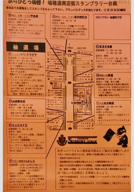 この台紙はスタンプラリーに参加している瑞穂通商店街の店舗で頂けるようですので、お店を訪ねてみてくださいね。