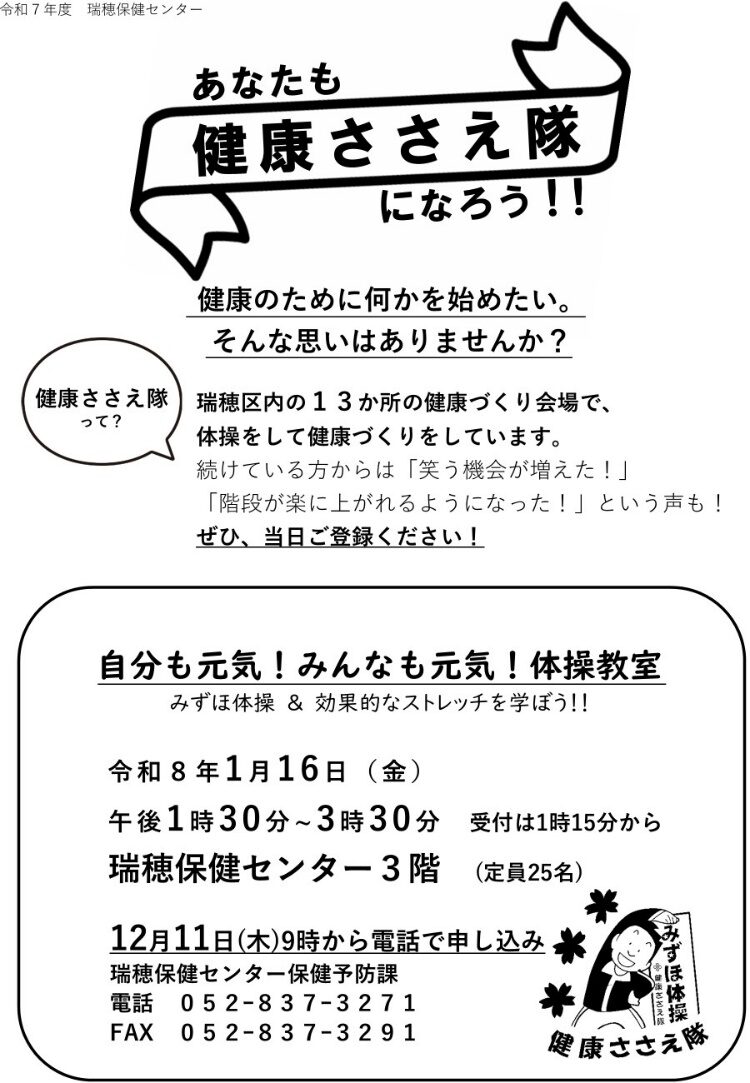 ・瑞穂保健センター「自分も元気!みんなも元気!体操教室」のホームページURL