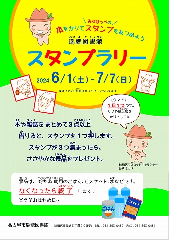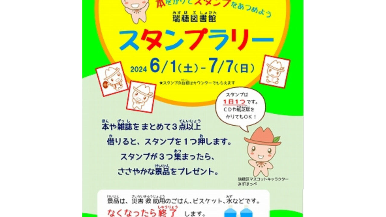 2024年6月1日(土)~7月7日(日)『瑞穂図書館スタンプラリー』が開催されるようです!