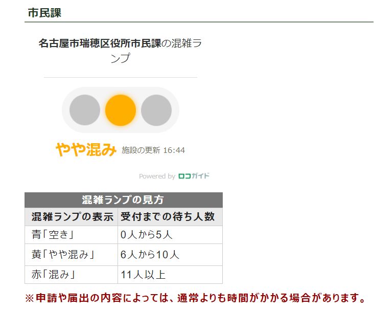 瑞穂区役所のホームページに『瑞穂区役所 市民課窓口』のいまの混雑状況がわかる、とっても便利なサービスが始まっていました!!