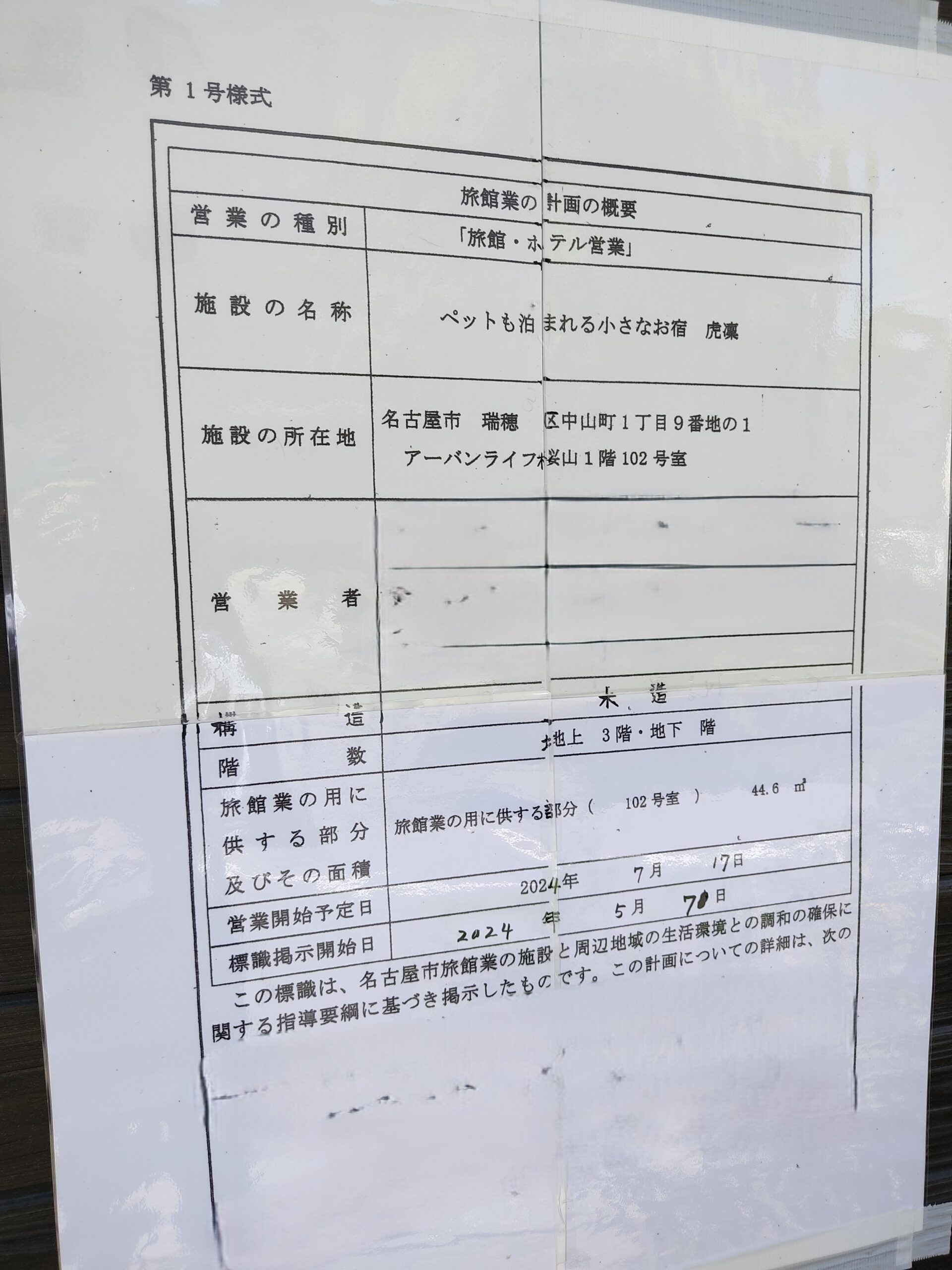 2024年の夏ごろ?瑞穂区・中山町に『ペットも泊まれる小さなお宿 虎凛』がオープンするようです!