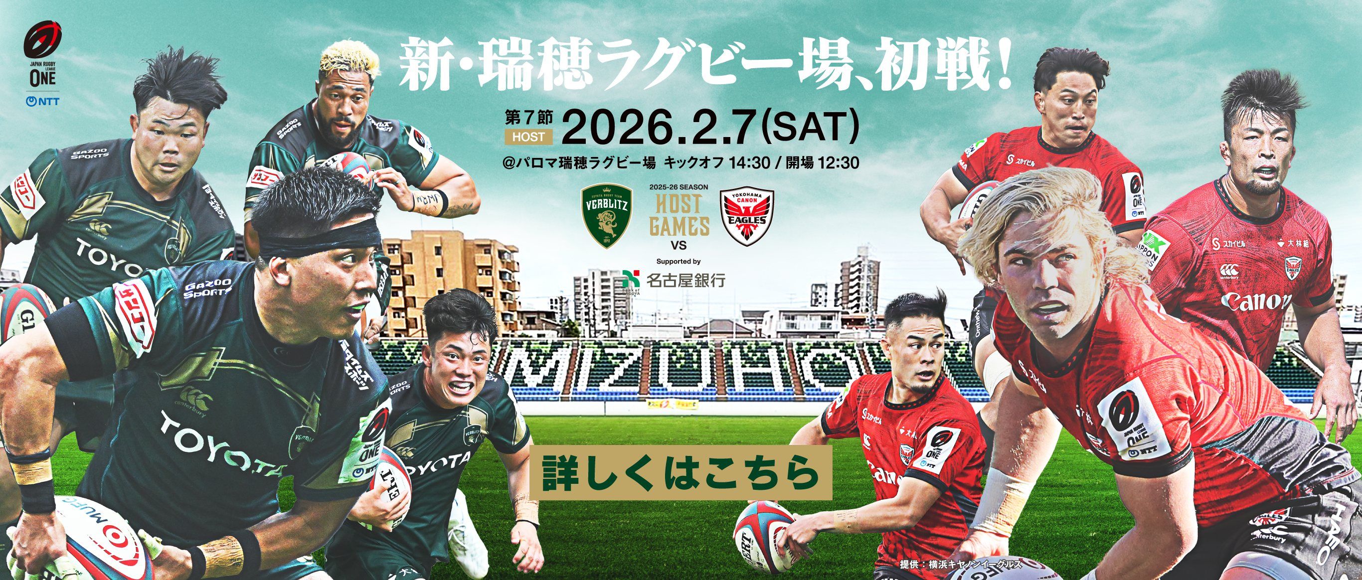 2026年2月7日(土)パロマ瑞穂ラグビー場で、NTTジャパンラグビー リーグワン『トヨタヴェルブリッツvs横浜キャノンイーグルス』が開催されます!