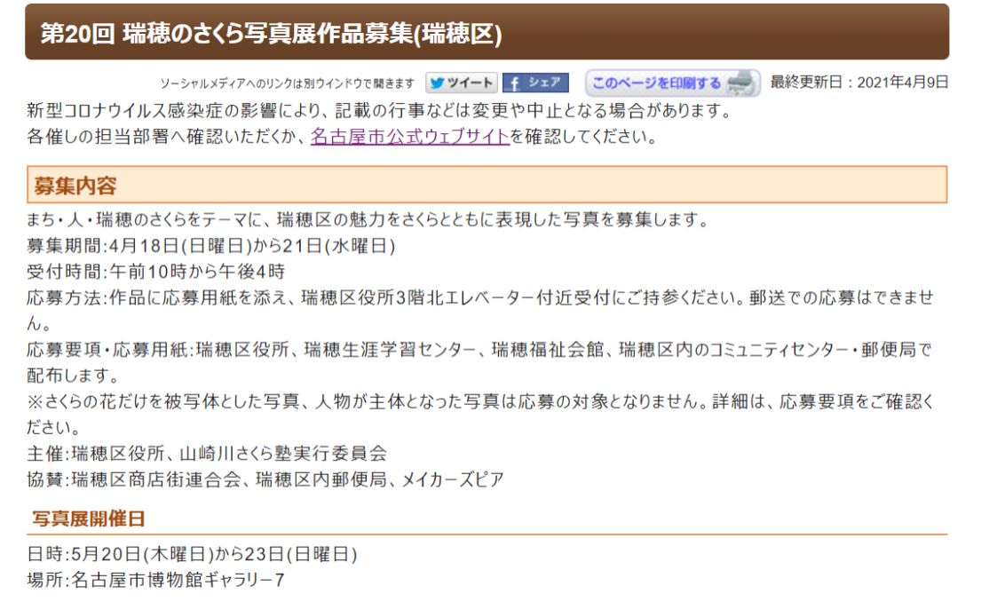 写真展は5月20日から名古屋市博物館で開催されるそうなので、いい感じに撮れたさくら&瑞穂区の写真がある方はぜひ、参加してみるのはいかがでしょうか??