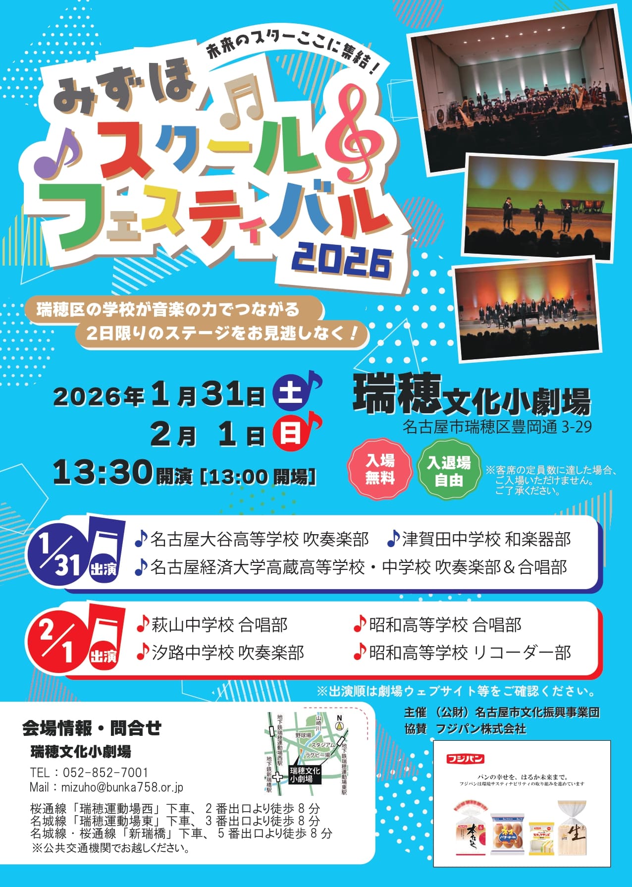 2026年1月31日(土)と2月1日(日)瑞穂文化小劇場で『みずほスクールフェスティバル2026』が開催されます!