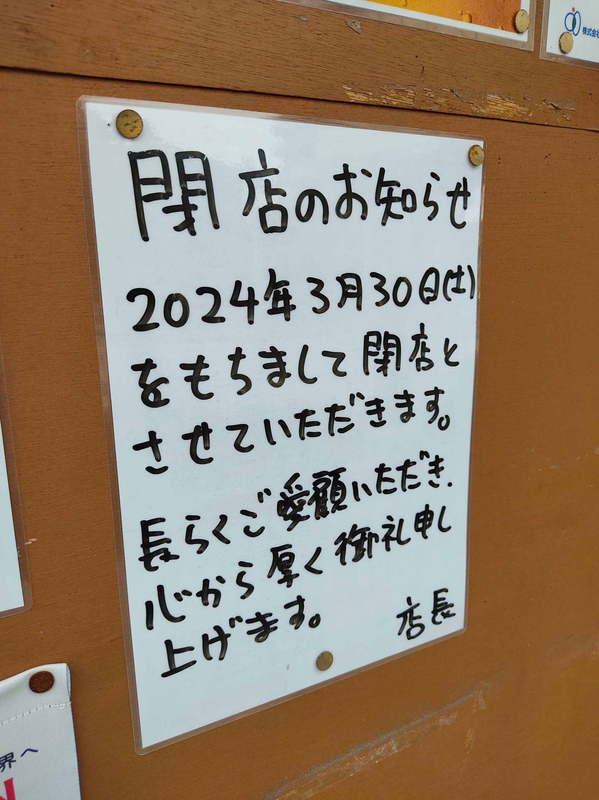 ↓お店のSNSやお店の前にも閉店のお知らせが出ていました↓