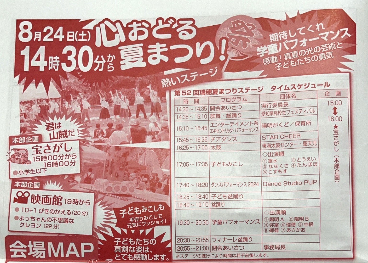 2024年8月24日(土)瑞穂公園南児童園で『第52回 瑞穂夏まつり』が開催されます!