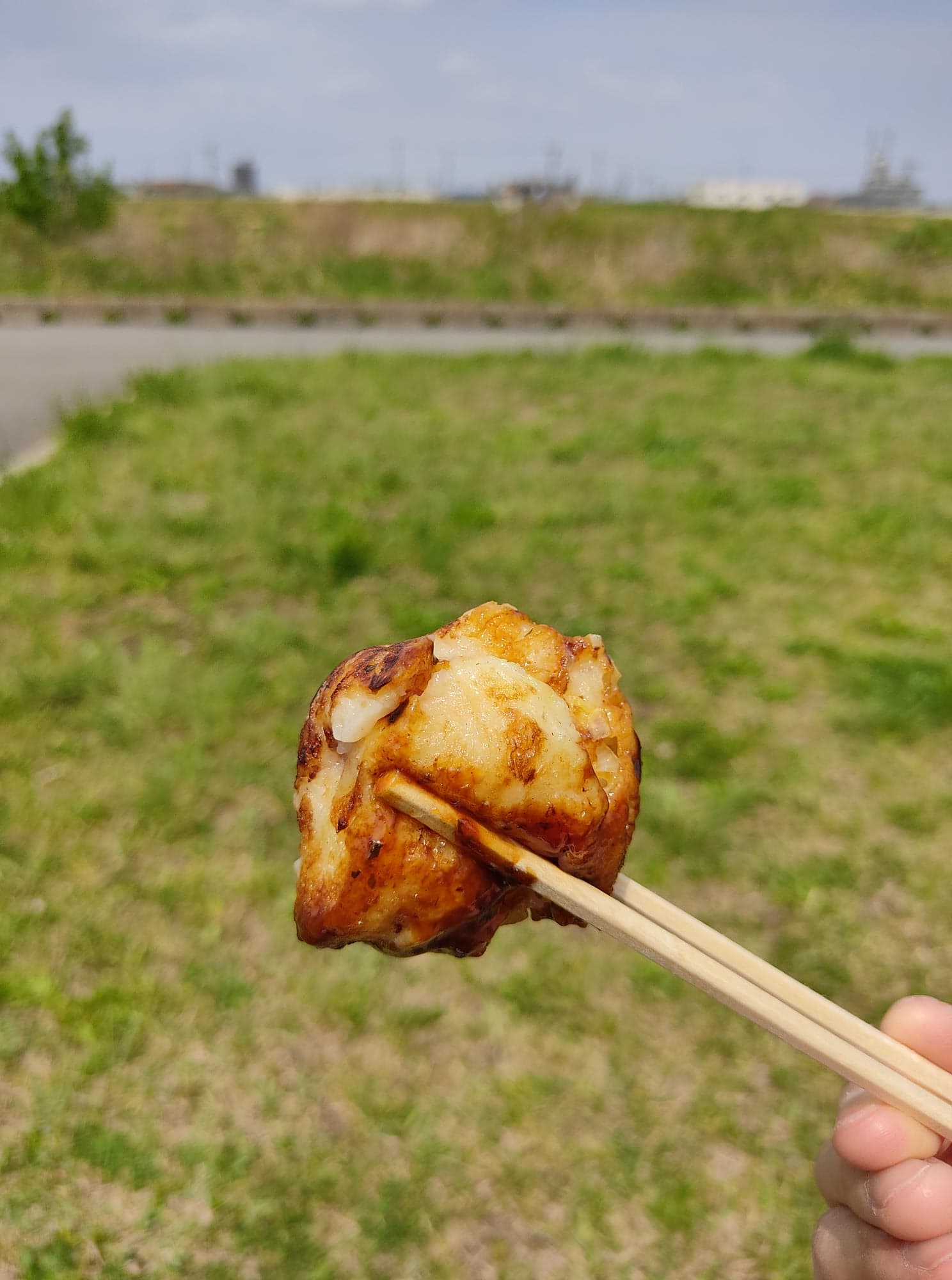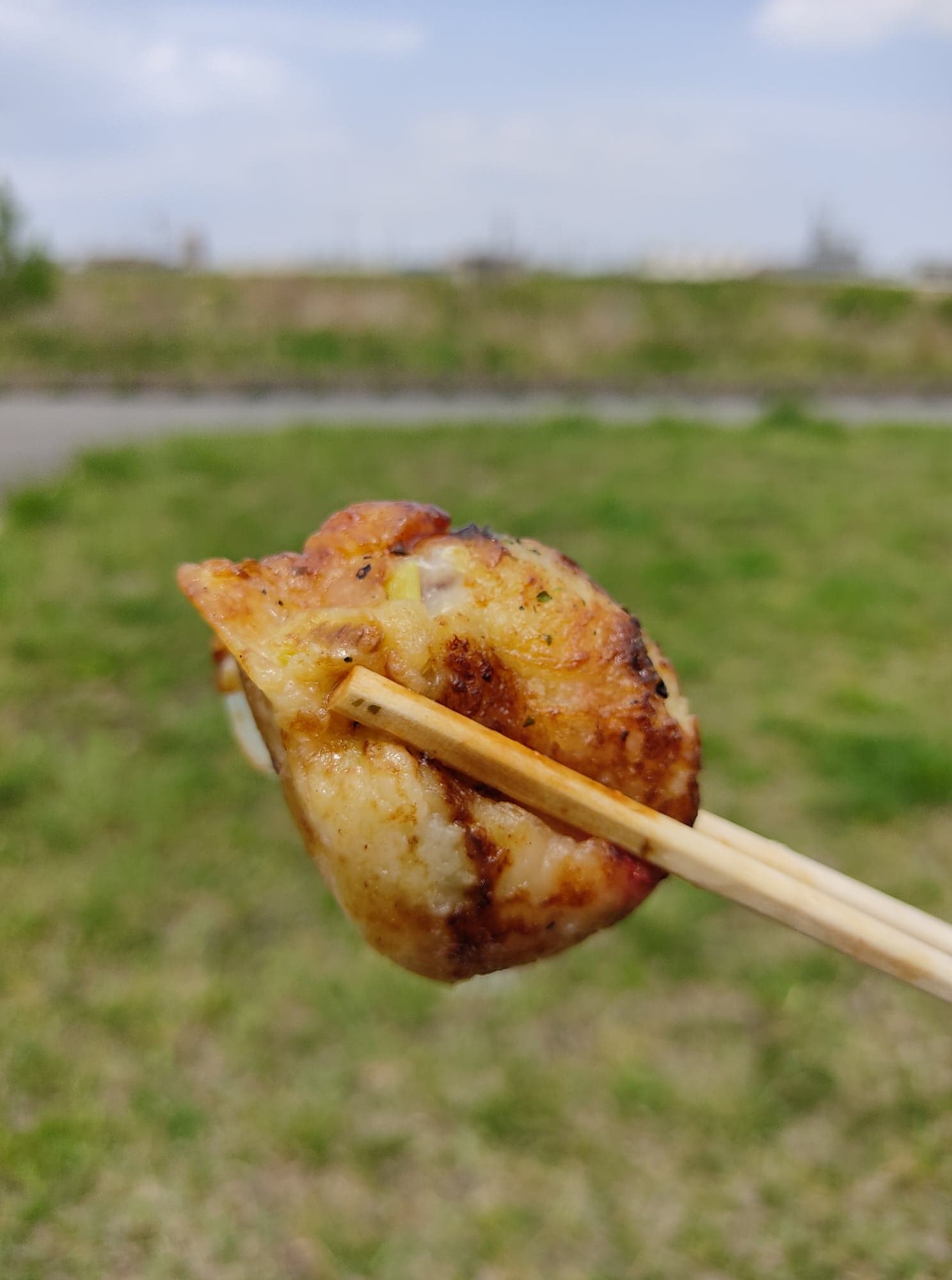 アツアツのたこ焼きを受け取り、冷めないうちに天白川の河川敷まで移動して頂くことに。