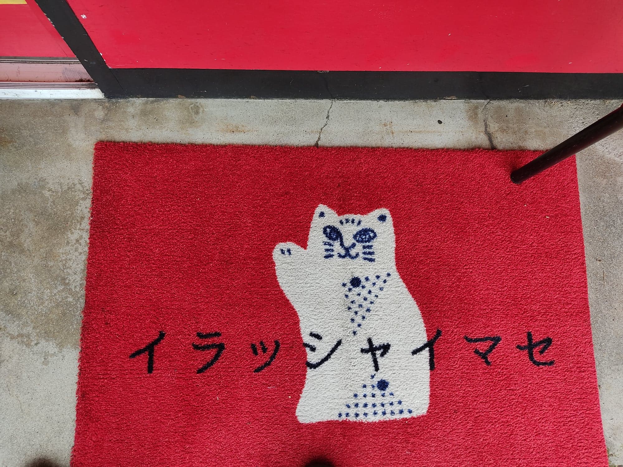 『イラッシャイマセ』と可愛い猫のマットがお出迎えしてくれます(^^♪