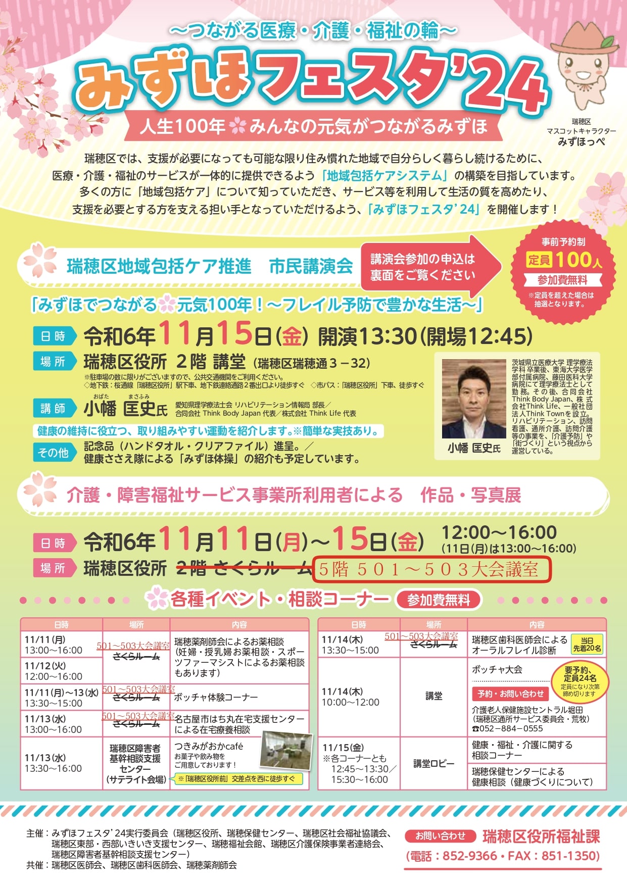 2024年11月11日(月)~15(金)まで、瑞穂区役所で『みずほフェスタ’24』が開催です!