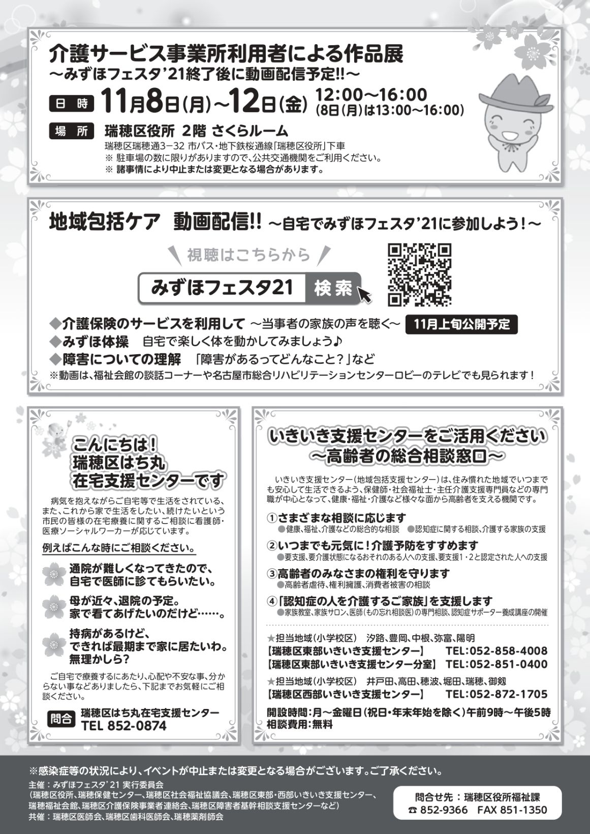 2021年11月、市民講演会や介護サービス利用者による作品展などのプログラム『みずほフェスタ’21』が今年も開催されます。