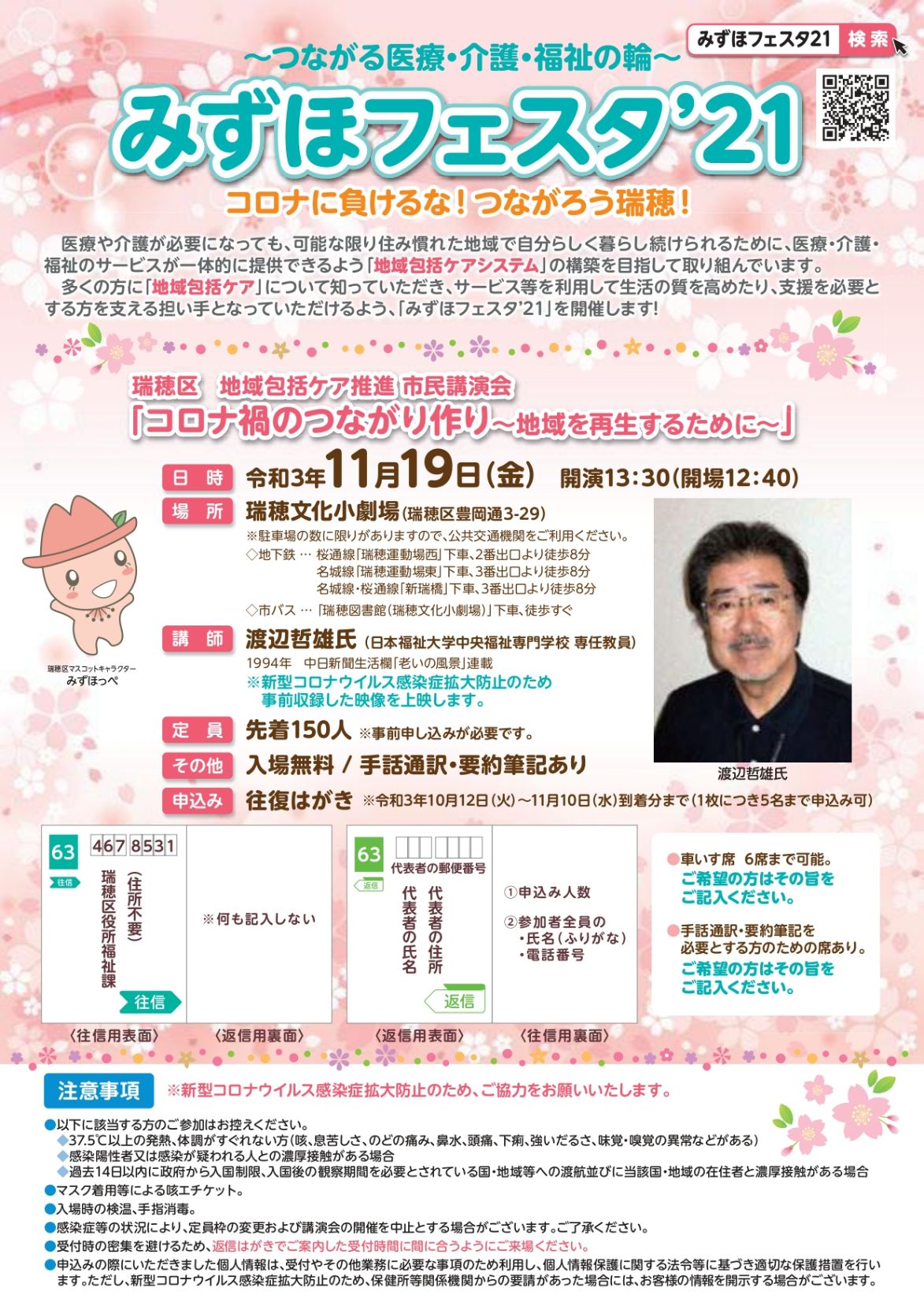 2021年11月、市民講演会や介護サービス利用者による作品展などのプログラム『みずほフェスタ’21』が今年も開催されます。