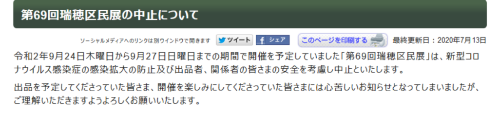 【第69回瑞穂区民展の中止について(名古屋市ホームページ)】