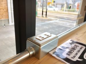 電源用のコンセントもあってパソコン作業なんかもできる♪