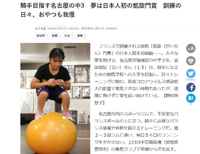 【騎手目指す名古屋の中3