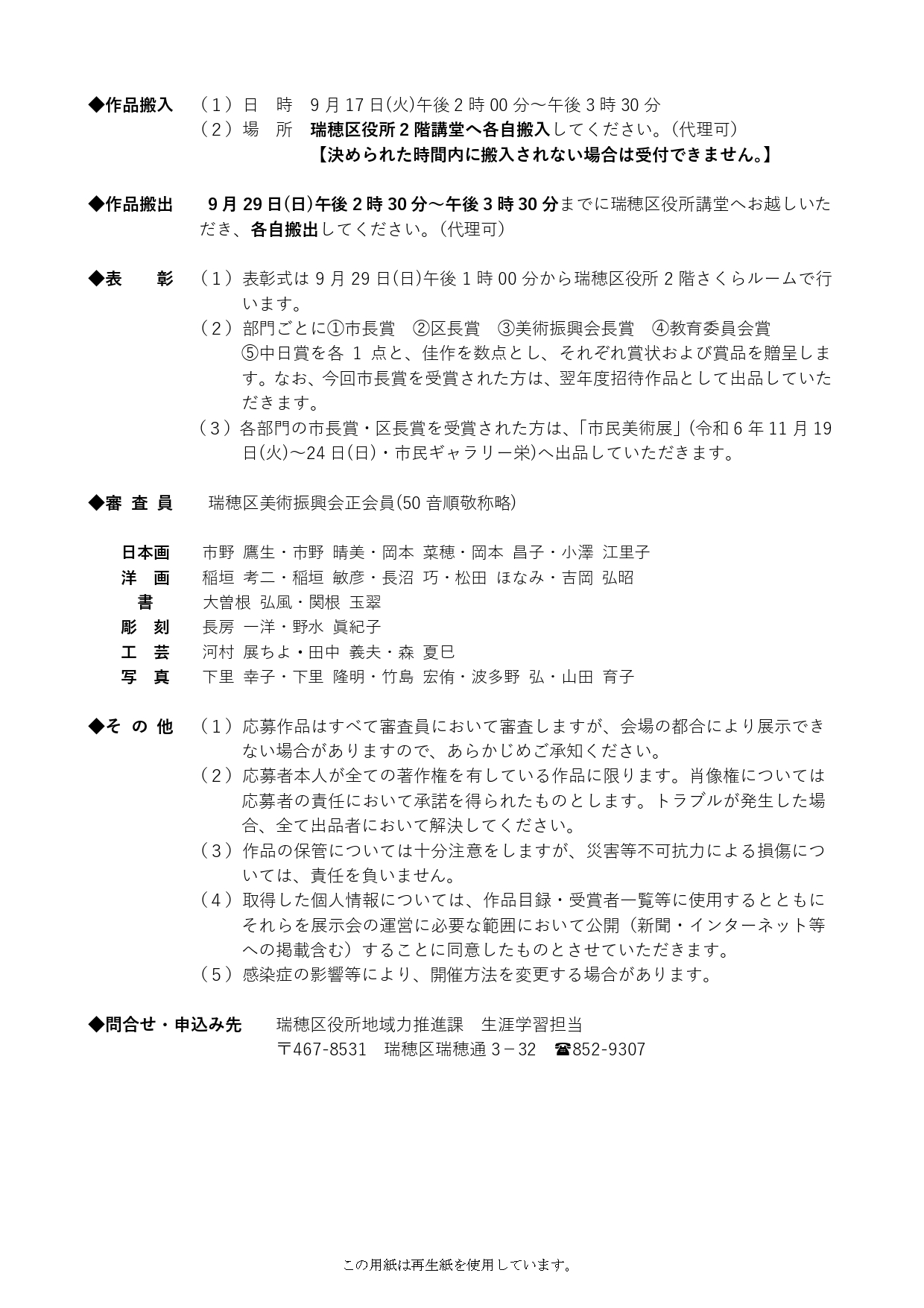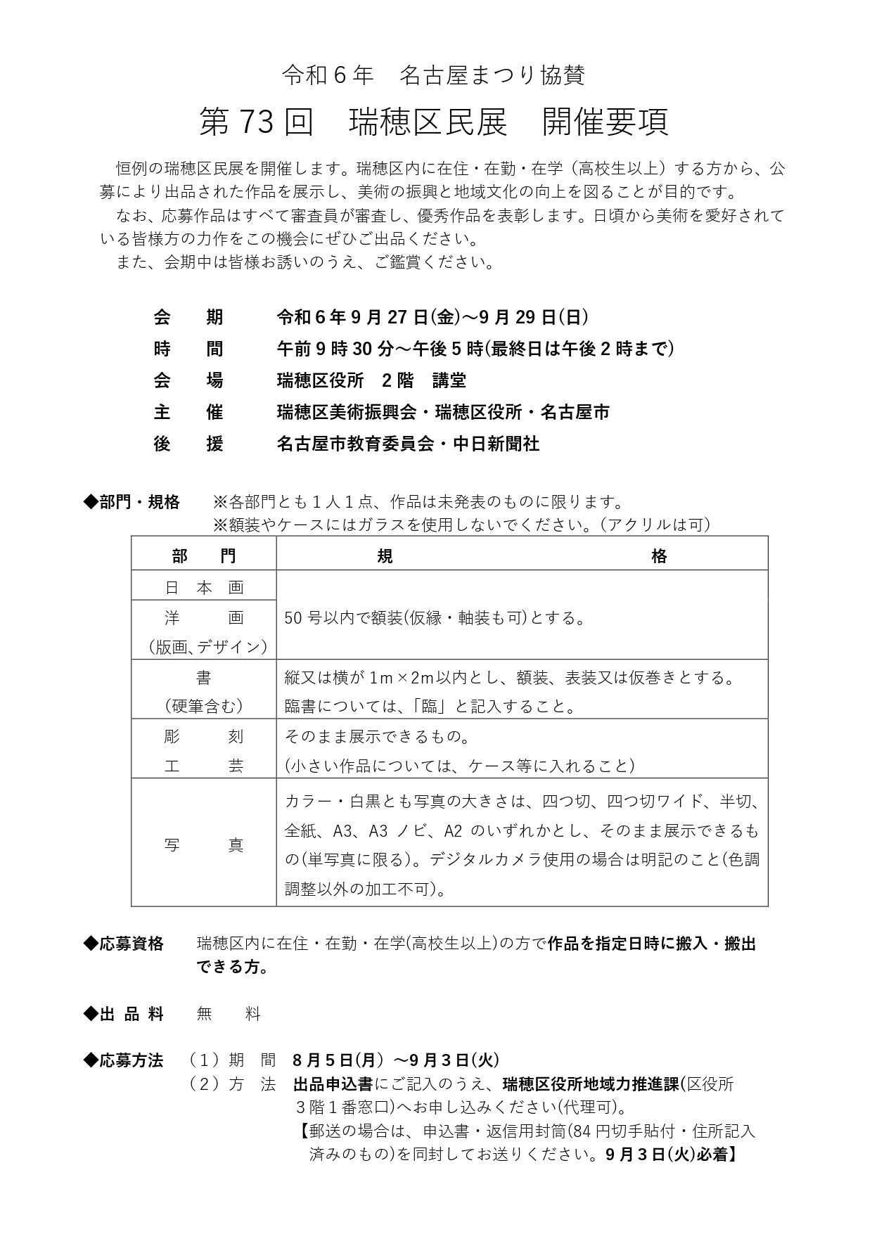 第73回 瑞穂区⺠展』の開催要項が発表されていました↓