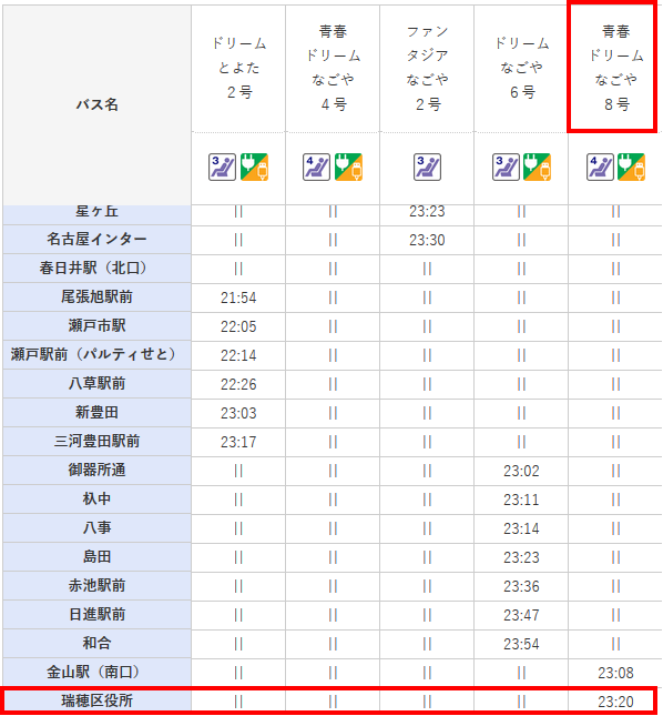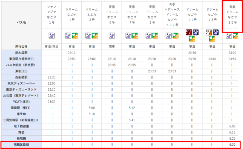 【JR東海バス 夜行バス 時刻表】