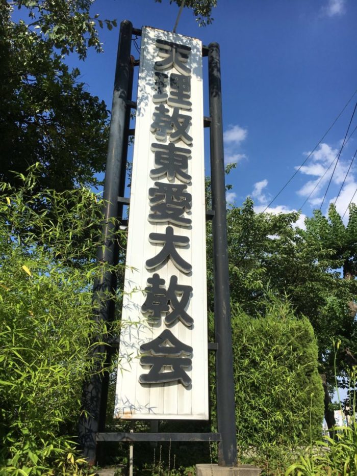 通り沿いに天理教東愛大教会の大きな看板が見えてきます!