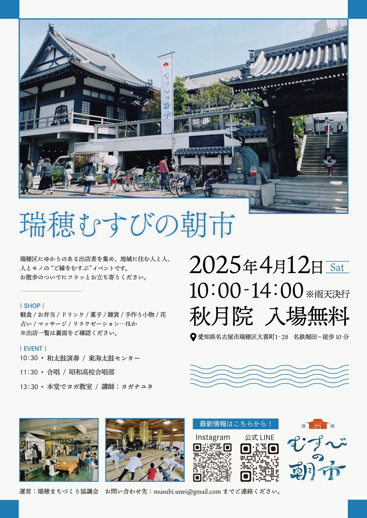 2025年4月12日(土)瑞穂区・大喜町の秋月院で『瑞穂むすびの朝市』が開催されます!!