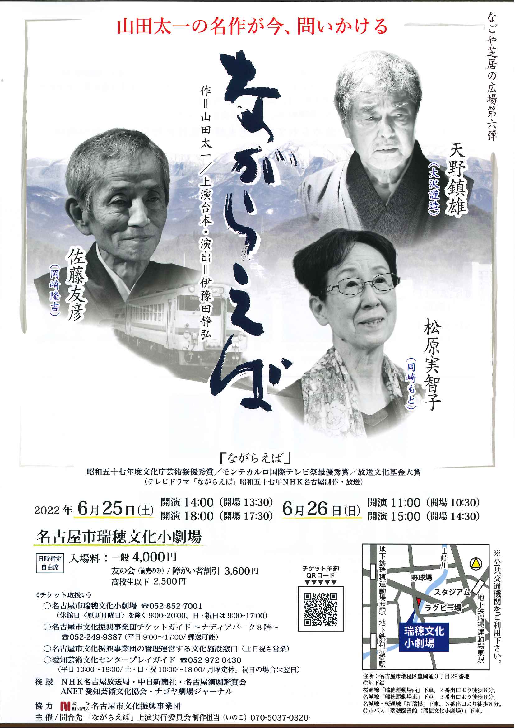 2022年6月25日(土)・26日(日)、瑞穂文化小劇場で【なごや芝居の広場 第六弾 「ながらえば」】が上演されます。