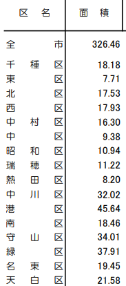 意外と知らなかった、名古屋16区の面積!