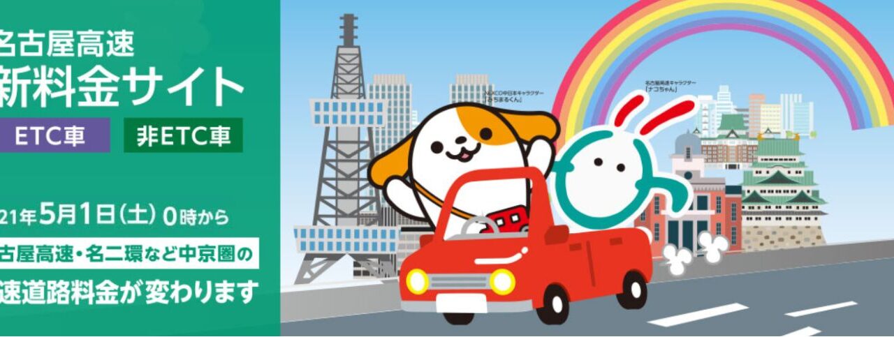 2021年5月1日(土)0時から名古屋高速、名二環など中京圏の高速道路料金が変更されています!!