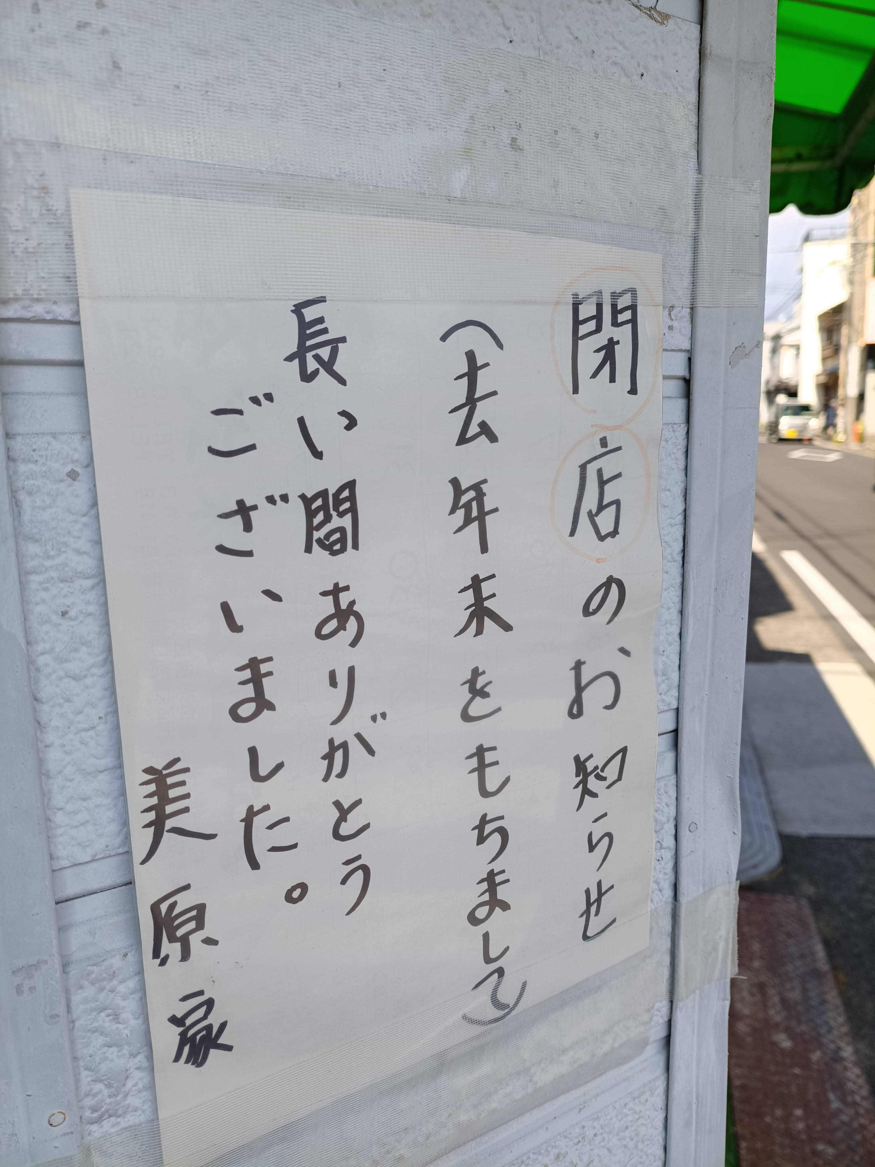 開店・閉店牛巻(春敲町)にあったサンドイッチ屋さん『美原家』が閉店していました…【瑞穂区閉店】 mizuhon 2026年2月7日 / 2026年2月7日 2025年末で、瑞穂区・牛巻近く、春敲町で営業していたサンドイッチ屋さん『美原家』が閉店していました… 場所は皆さんおなじみ、牛巻交差点からちょっと北東側。 詳しい場所はこちら みずほ大学、瑞穂高校の斜め裏の交差点にお店はありました。 味のあるフォントが印象的な看板。 2025年末で長きに渡る営業を終了していました… バラエティ豊かなサンドウィッチが揃う、貴重なお店でした。これまでの営業、お疲れ様でした。 *この記事情報は2026年2月3日現在のものです。 牛巻 閉店