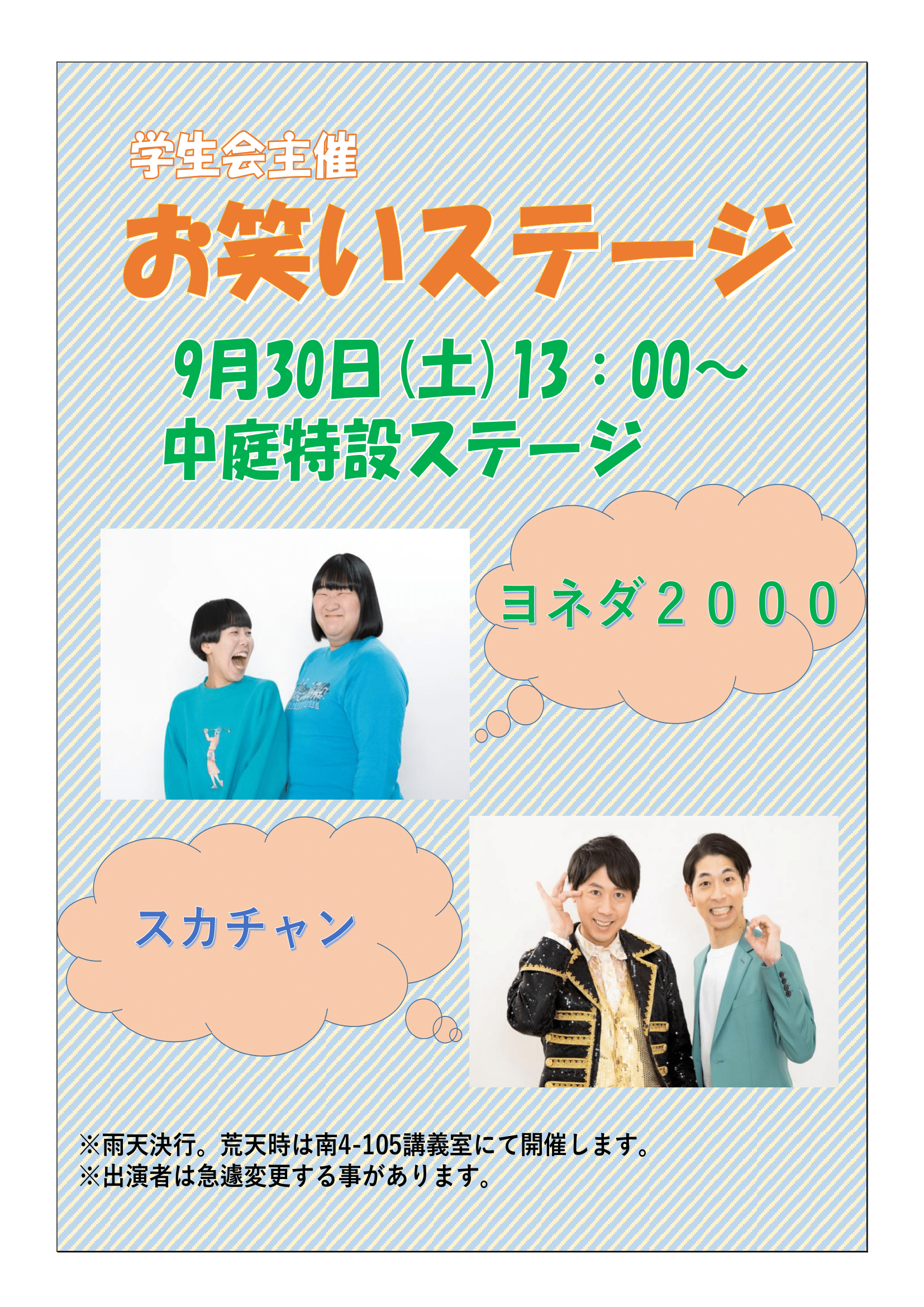 イベント『ヨネダ2000』『ヤジマリー』が登場!名古屋女子大学祭が9/30と10/1に開催!【瑞穂区イベント】 mizuhon 2023年9月25日 2023年9月30日(土)、10月1日(日)に瑞穂区の名古屋女子大学で大学祭が開催!様々な催しやイベントが開催予定です!! 個人的には、ヨネダ2000とスカチャンをゲストに呼ぶ実行委員会の方々のセンスが素晴らしい(^^♪ ↓会場の名古屋女子大学↓ ↓詳しい場所はこちら↓ 秋は学園祭シーズン!今年も名女大祭を楽しんじゃいましょう♪ 【第72回名女大祭】 日程:2023年9月30日(土)、10月1日(日) [公式インスタ][公式ページ]*この記事情報は2023年9月25日現在のものです。 *詳細につきましては主催者へご確認ください。 イベント 瑞穂区役所