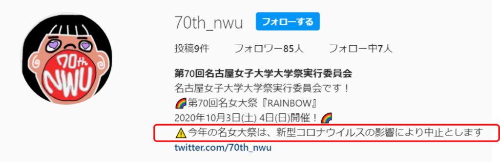 2020年の学園祭は新型コロナウイルスの影響により中止が決定したようです…