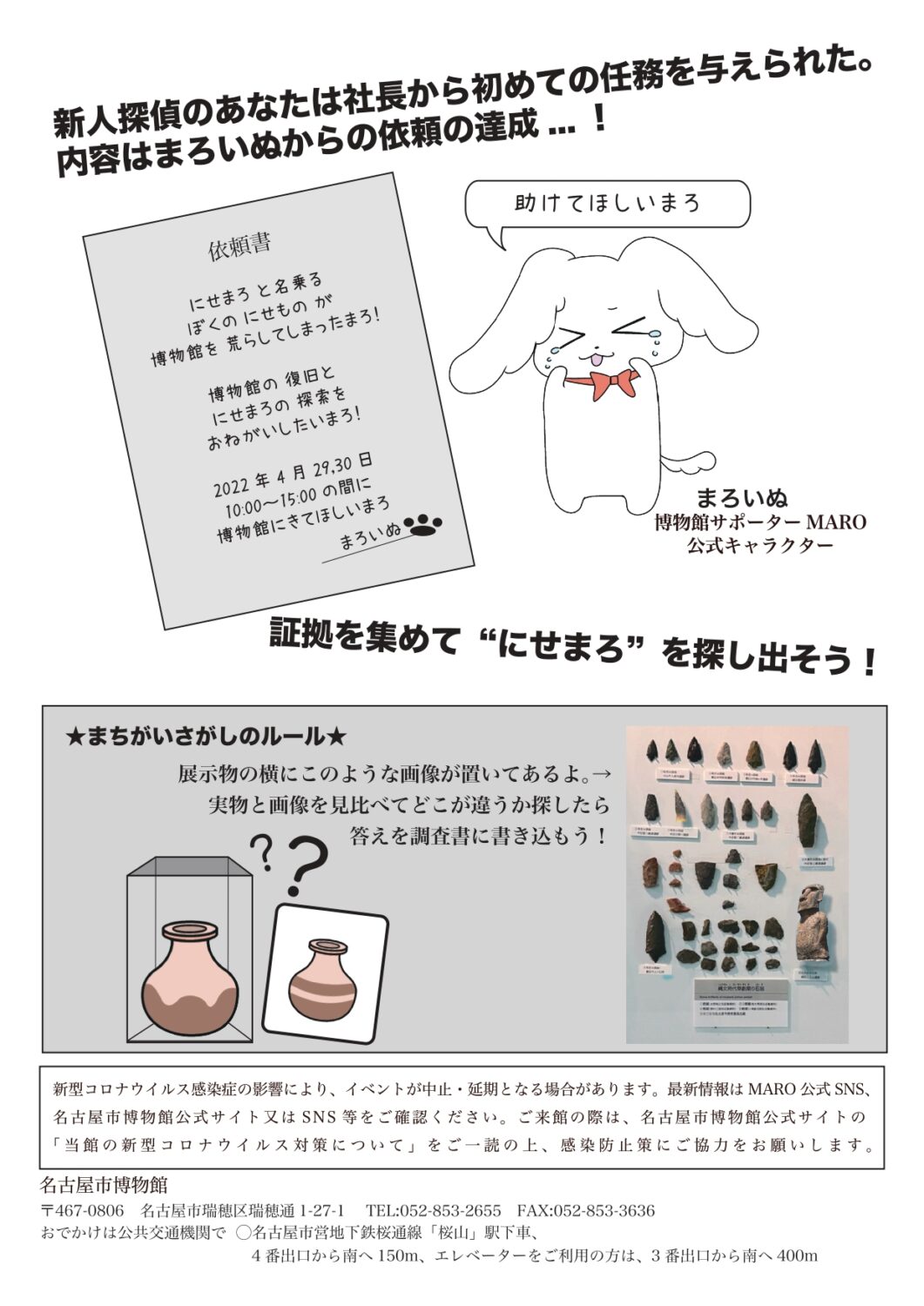 2022年4月29日(金・祝)と30日(土)、名古屋市博物館で『まちがいさがしイベント 博物館元通り大作戦』が開催!!