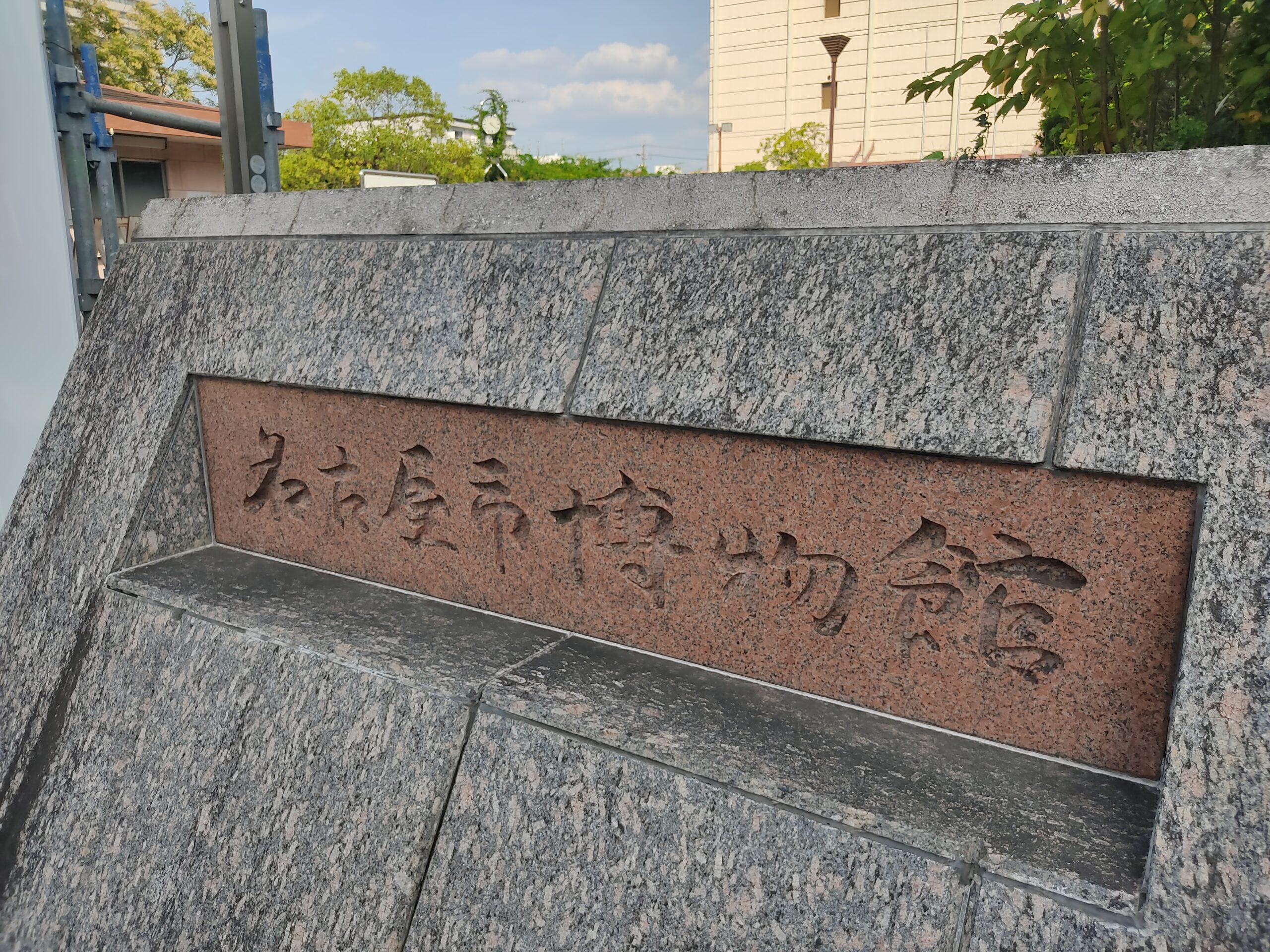 場所はリニューアル工事が進む名古屋市博物館の正面入口のところ。