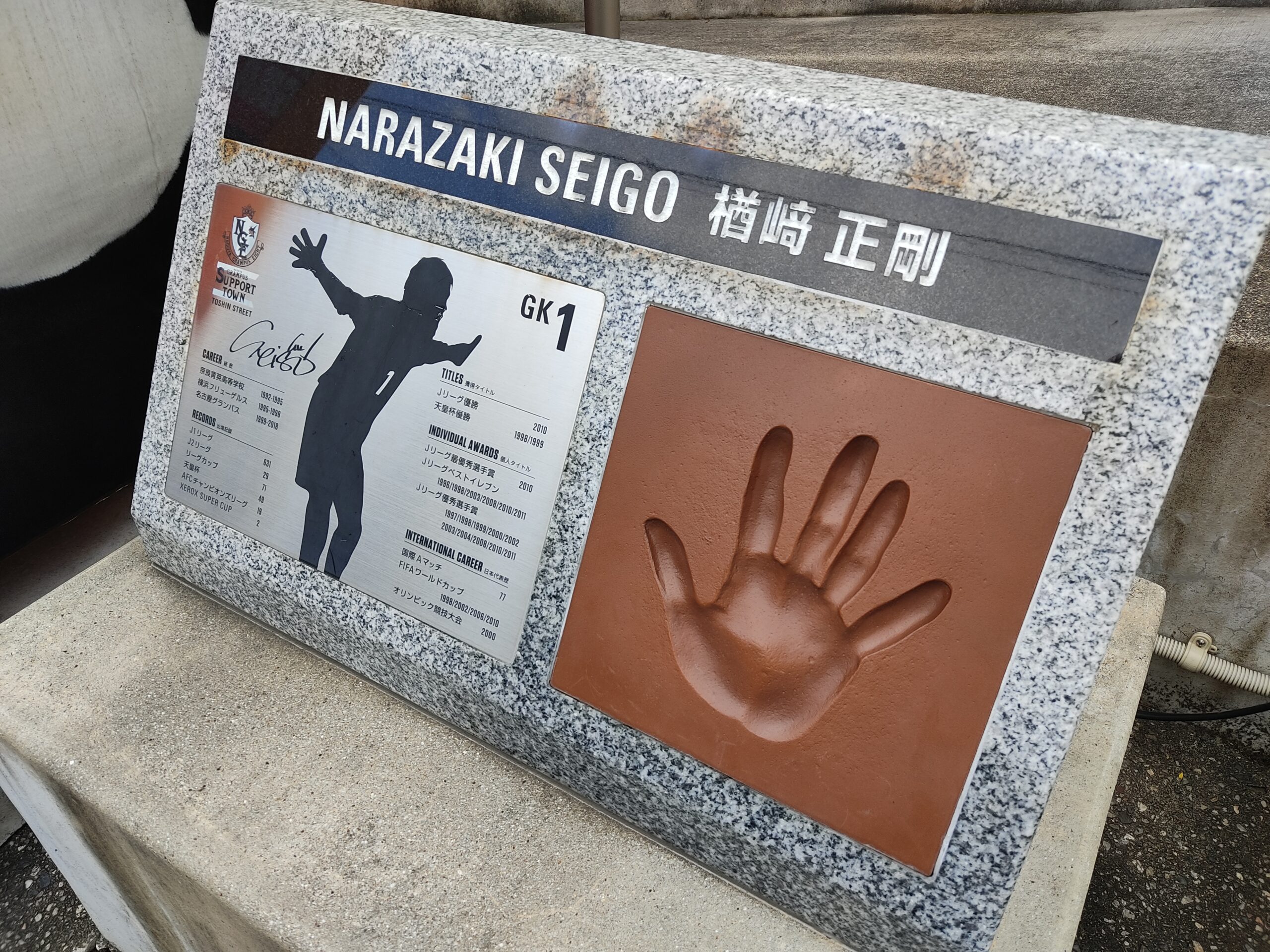 どうしてここに楢崎選手の手形&モニュメントがあるのかは正確な情報ありませんでした。