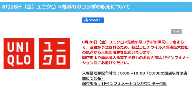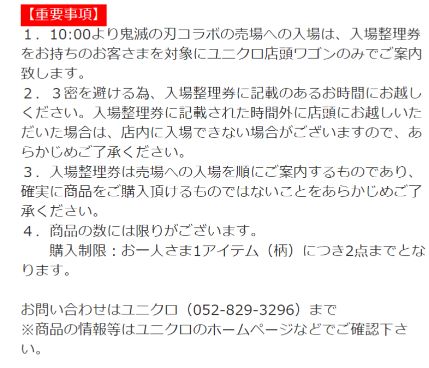 【ニュース】大人気!8/28『ユニクロ ×鬼滅の刃コラボ』イオン新瑞橋でも販売!注意点も掲載されていました!!