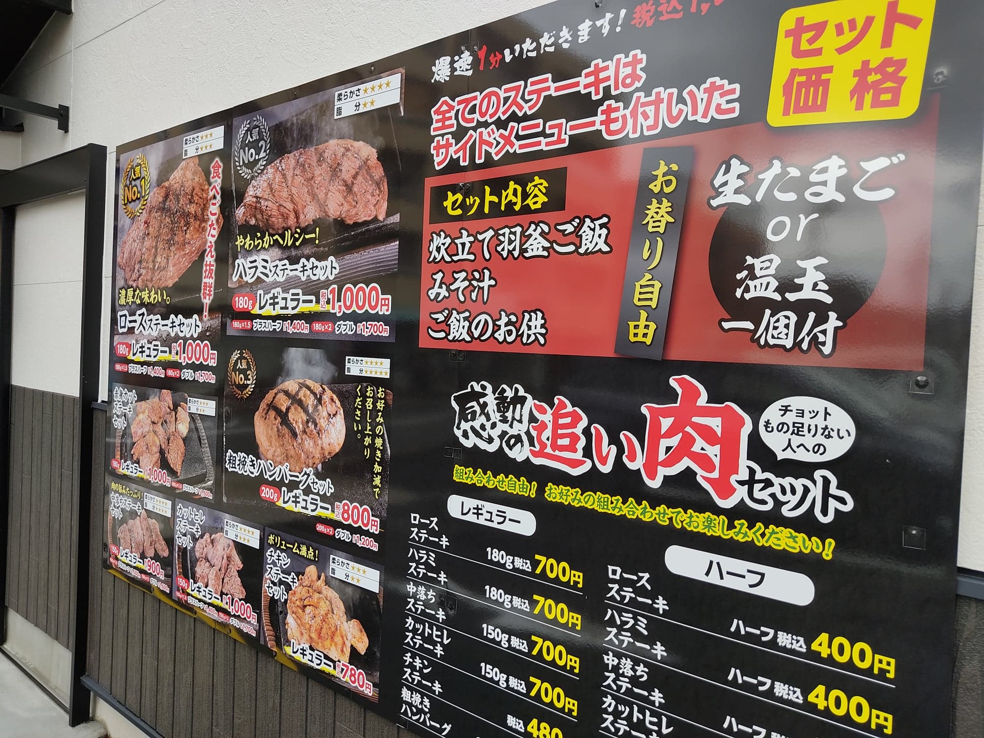 今回は、瑞穂区豊岡通に2022年6月オープンした『感動の肉と米 瑞穂店』で「ステーキ」&「ご飯のお供食べ放題」を満喫してきました!!