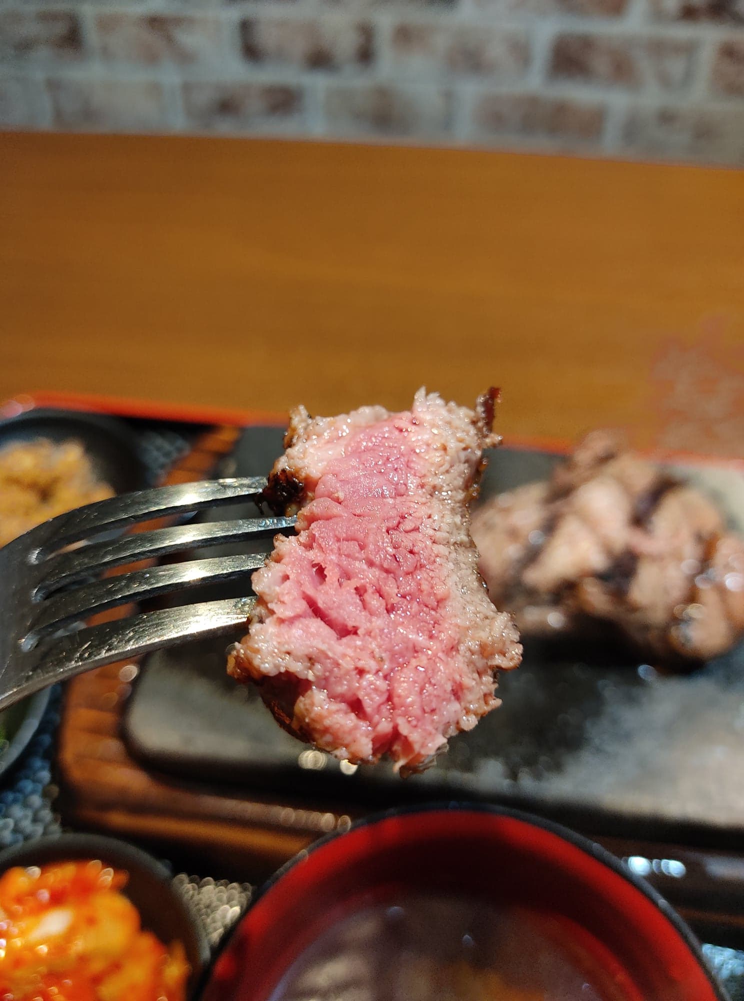 少しレアの状態で焼かれていますので、鉄板の熱で好きな焼き加減に調整できますよ♪
