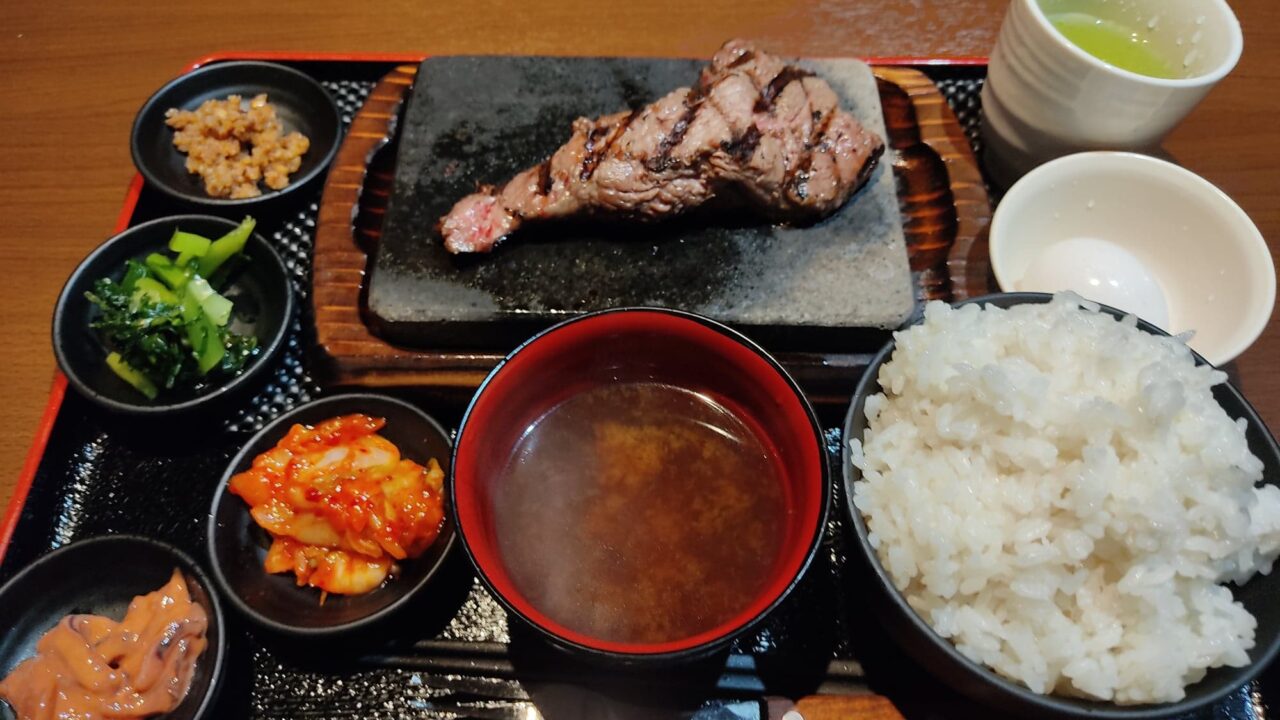 この日は【ロースステーキセット(レギュラー180g)(¥1,000)】を注文。