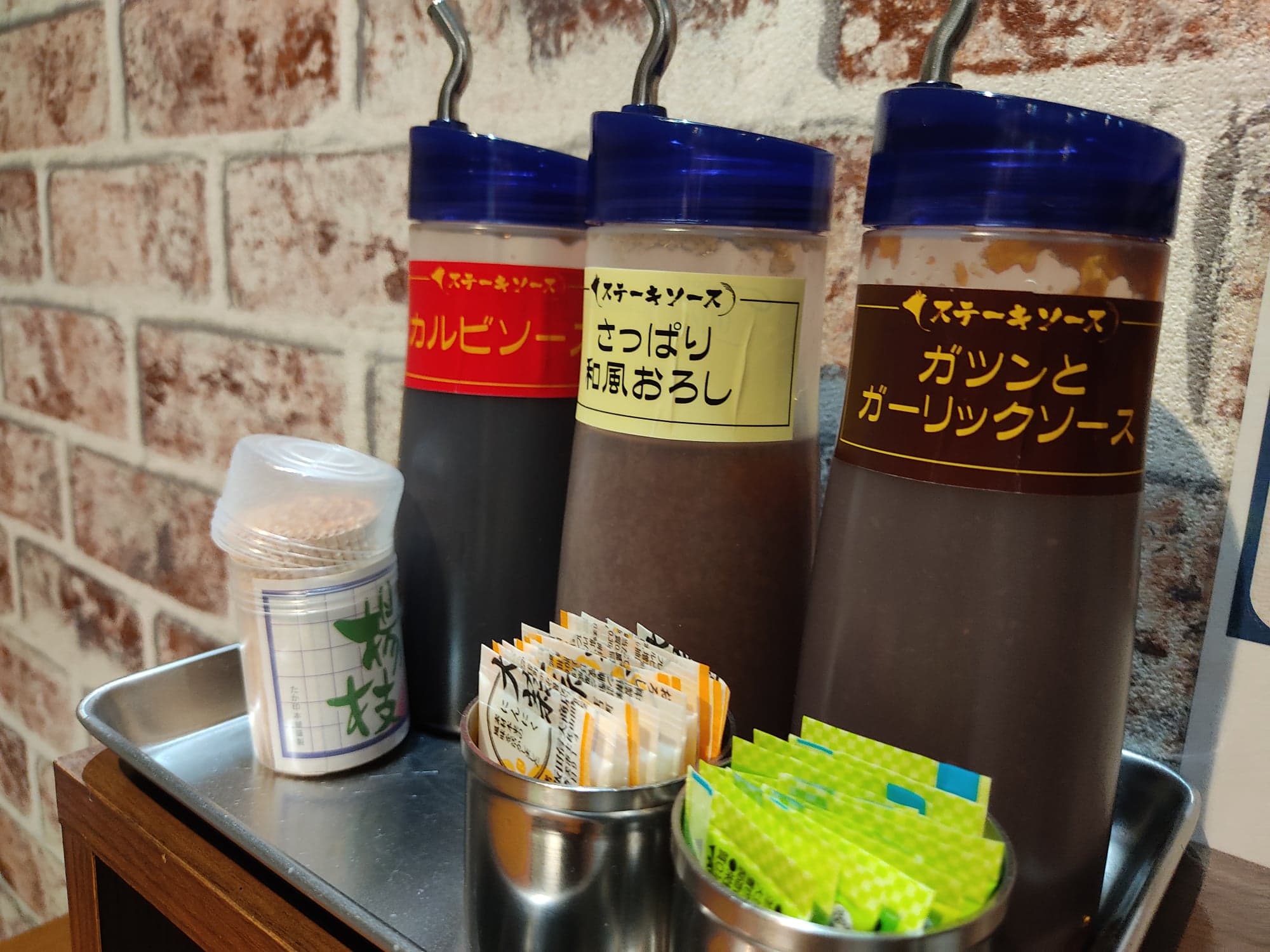 ソースはテーブルの横に並んでいて、どれも美味しかったですが、個人的にはガーリックソースが一番食べ応えがありました!