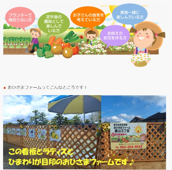調べてみると『おひさまファーム』は【サンクスハウスバンク】さんという名古屋の不動産会社が運営している都市型家庭菜園で、名古屋市内で何か所か運営されているようです。