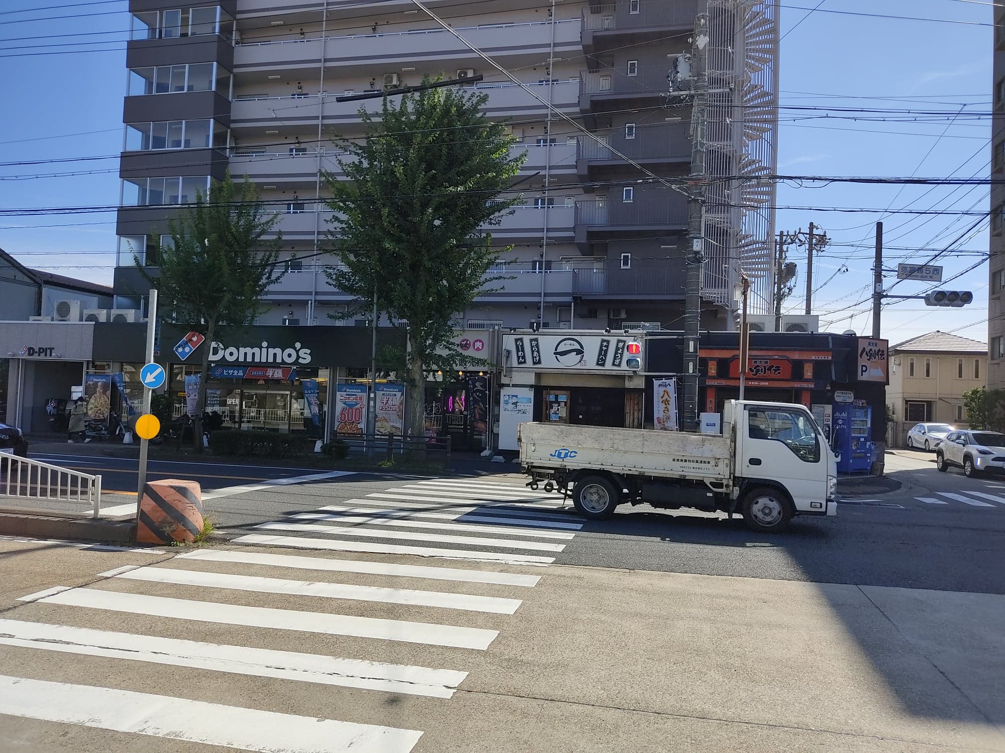 『ドミノピザ』と『中華そば まるいち』の間です。