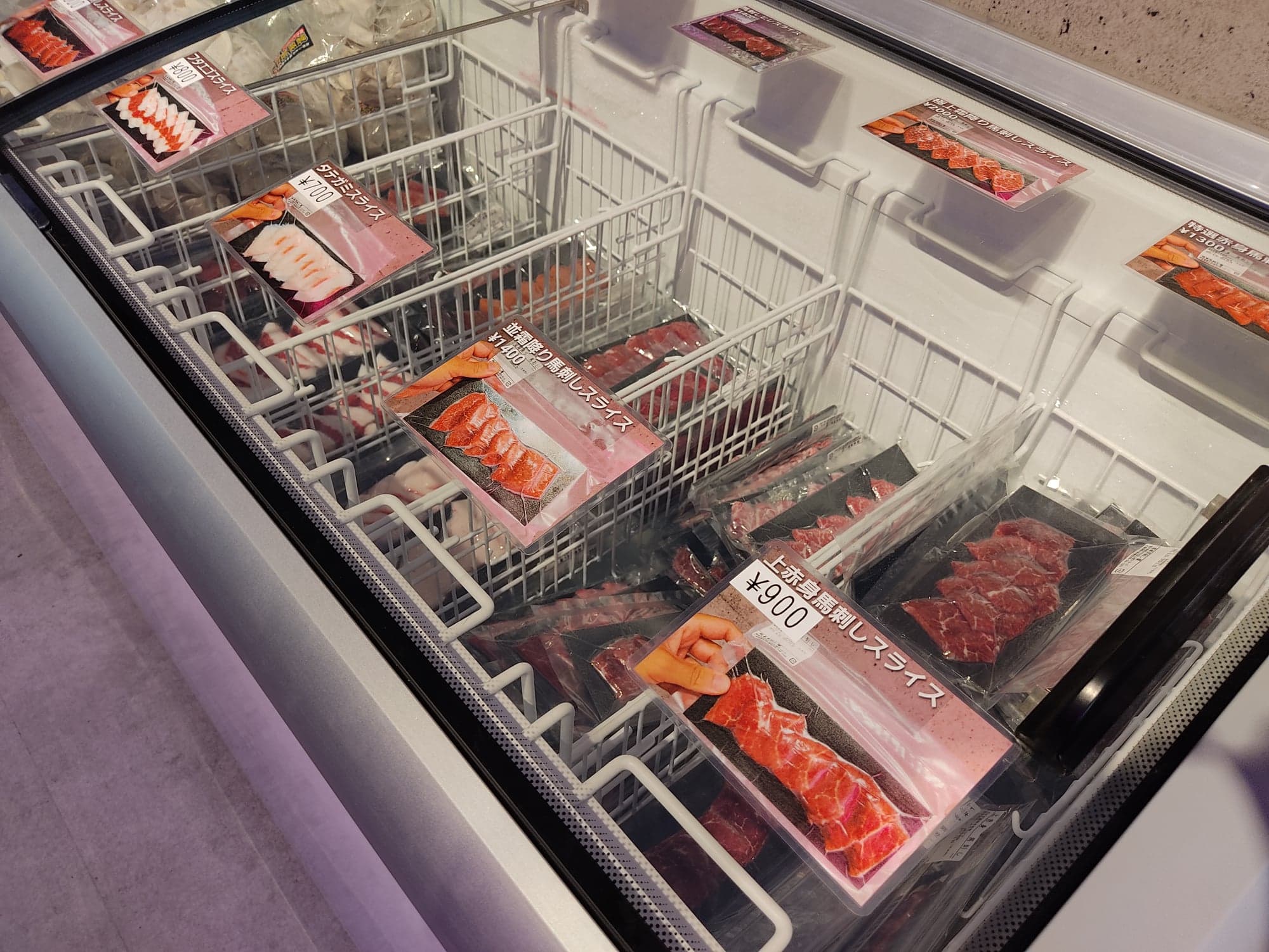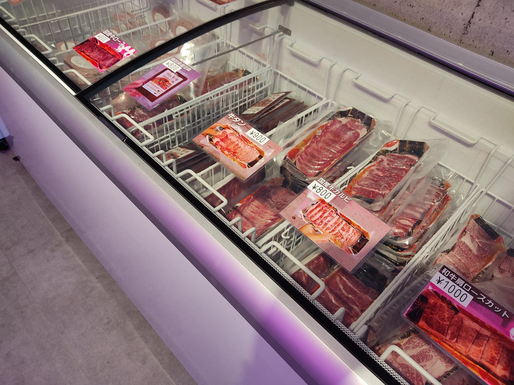 冷凍のお肉が並びます。種類いっぱい!!