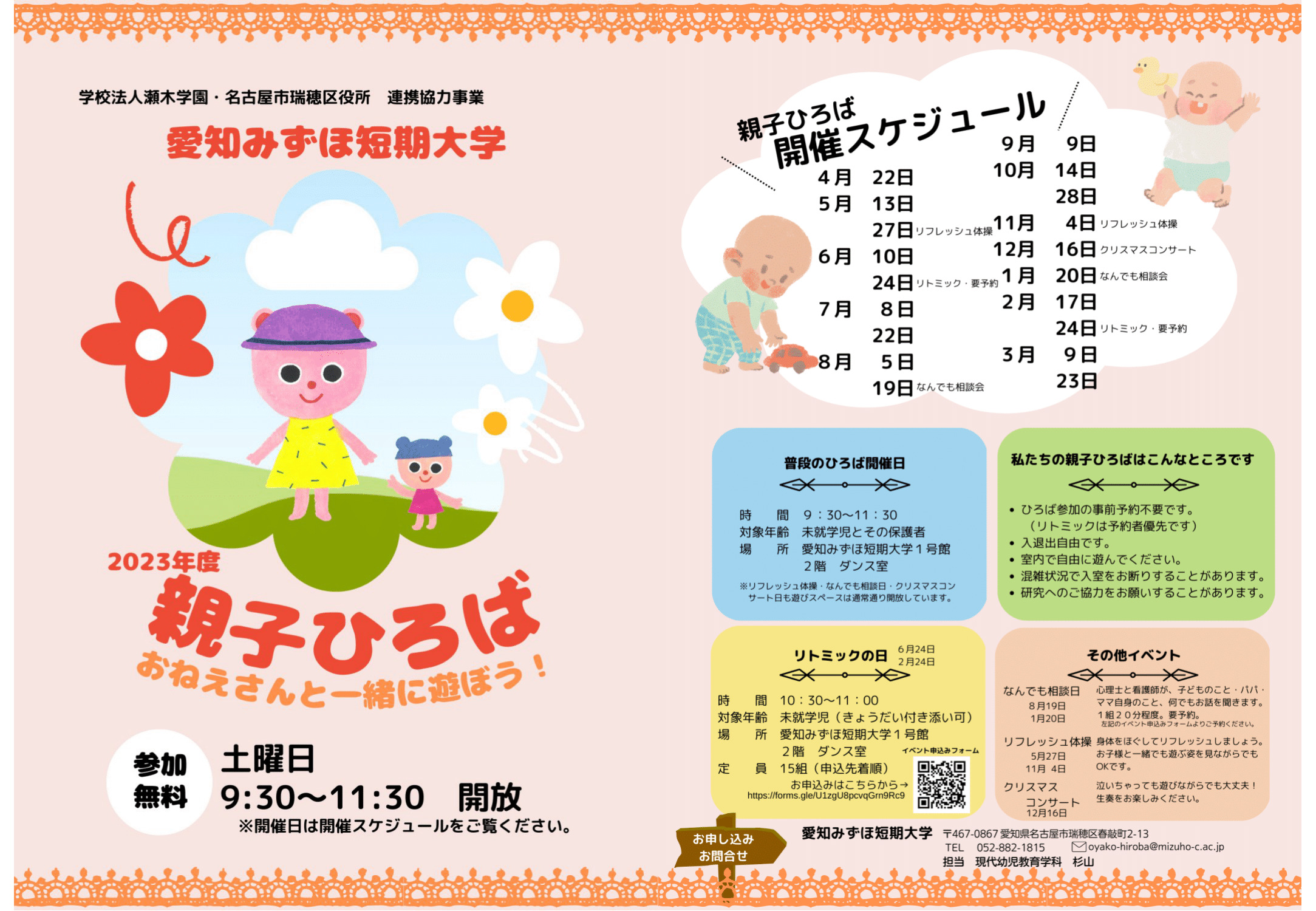イベント愛知みずほ短期大学で『2023年度親子ひろば』開催中!【瑞穂区イベント】 mizuhon 2023年4月13日 瑞穂区・牛巻にある愛知みずほ短期大学で『2023年度親子ひろば』が開催中です! ↓詳細はこちら↓ 愛知みずほ短期大学の場所はこちら↓ 大学の学生さんたちが様々な遊びやイベントを開催中です!ぜひ、お子様連れで足を運んでみるのはいかがでしょうか??最新情報や詳しくは大学ホームページをご確認ください *この記事情報は2023年4月13日現在のものです。 *詳細につきましては主催者へご確認ください。 イベント 子育て 牛巻