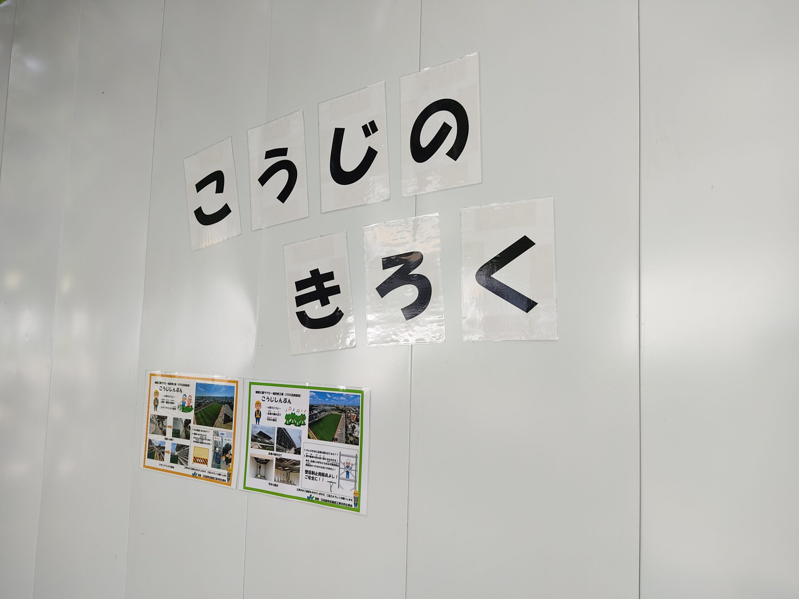 ラグビー場の前を走る道路沿いに”こうじのきろく“が貼り出されています。