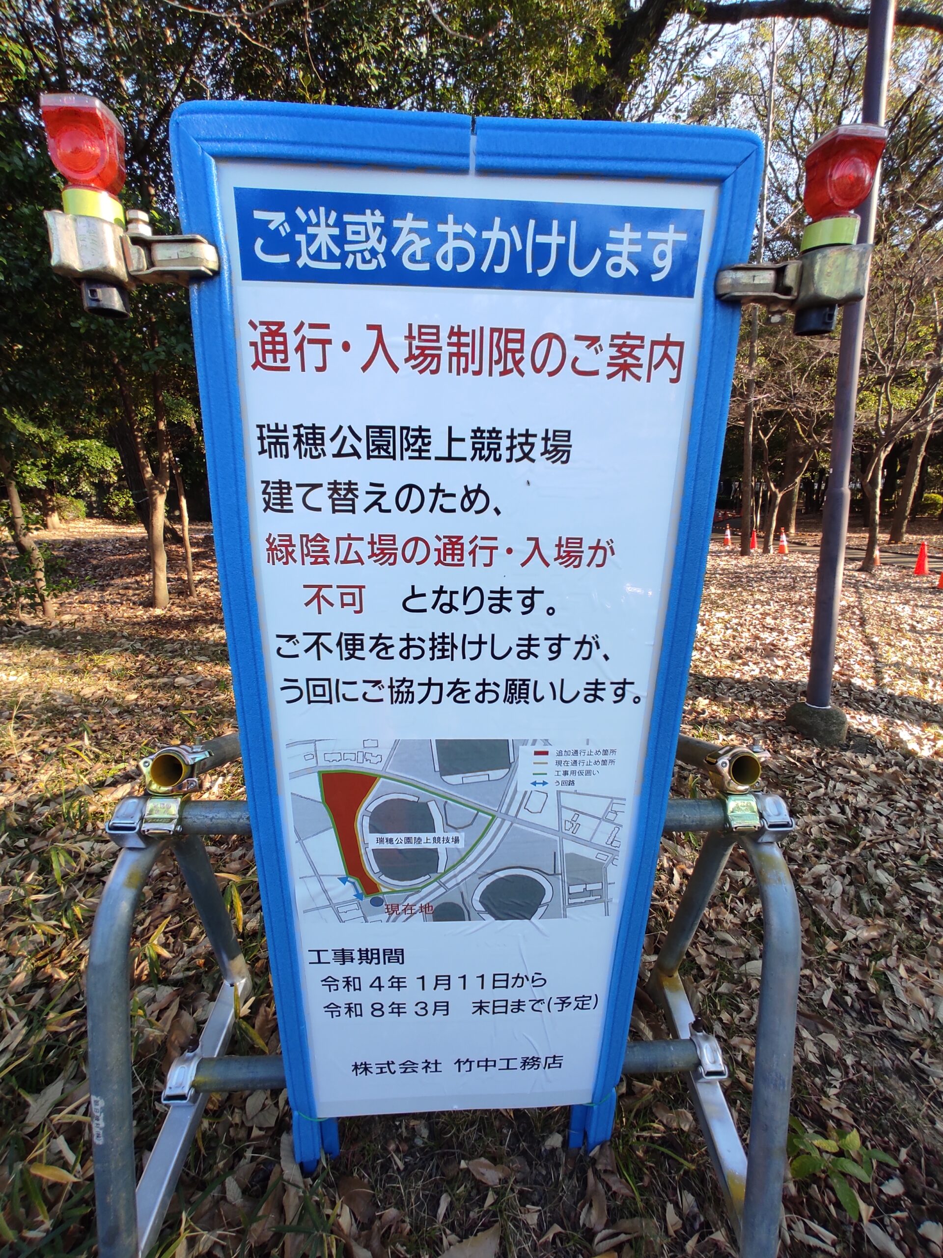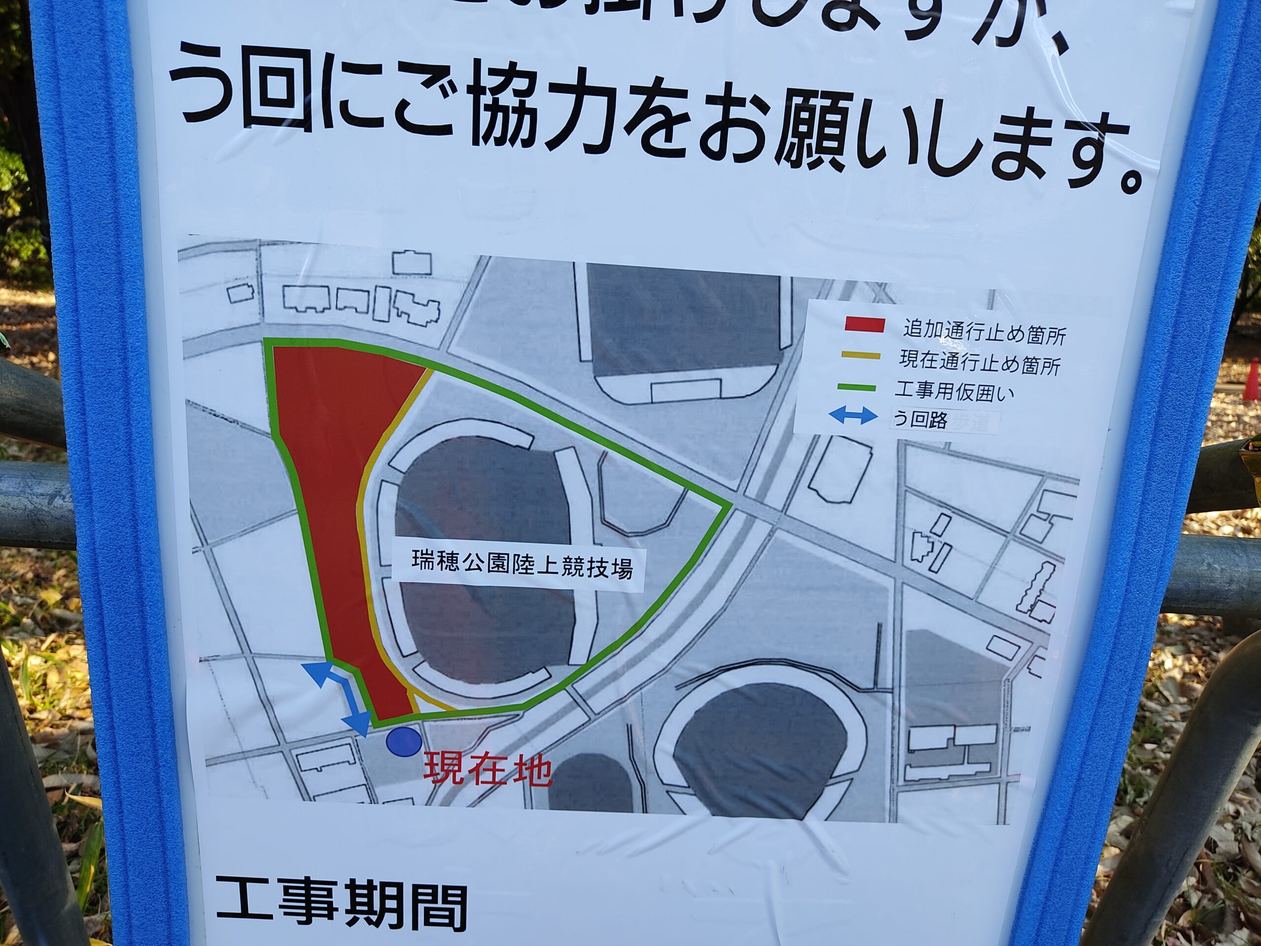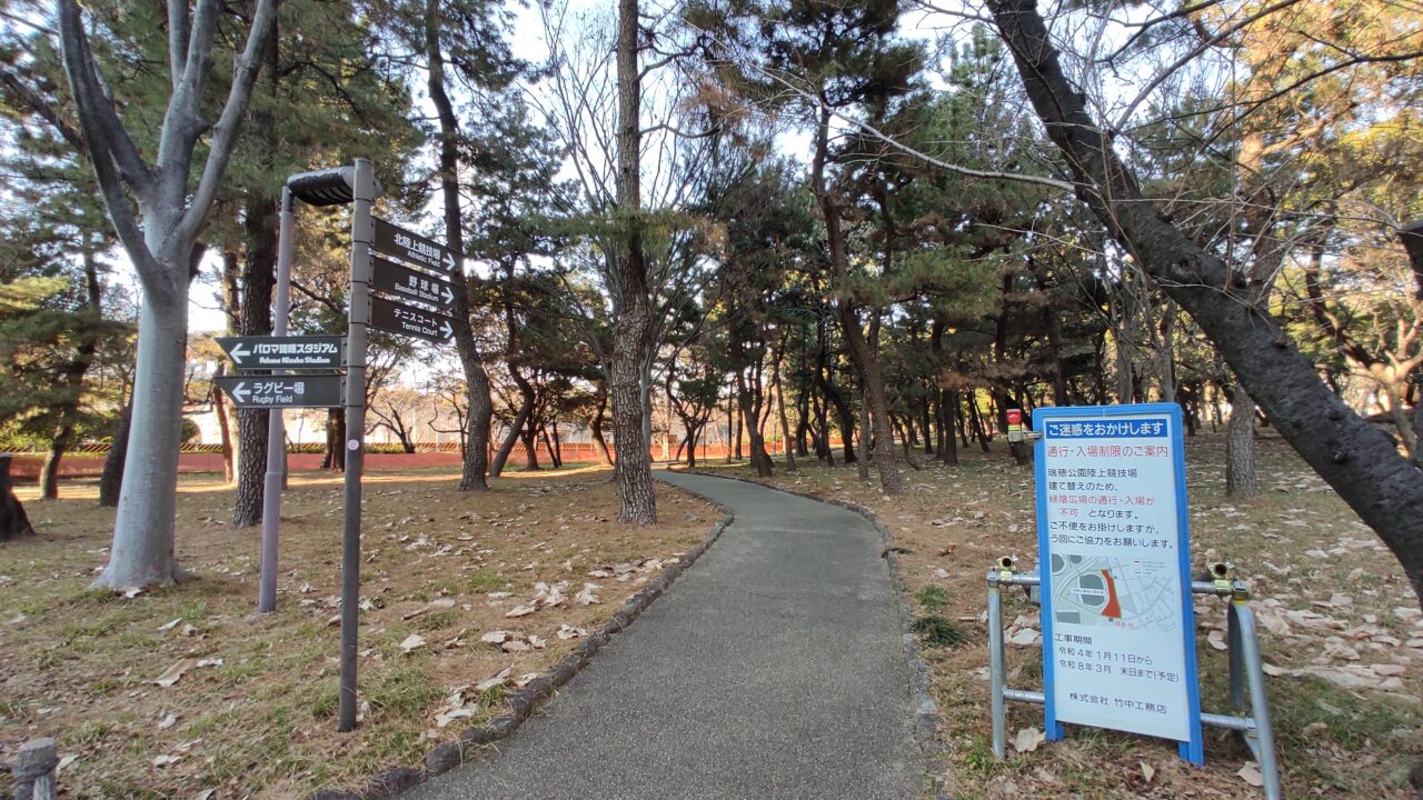 瑞穂陸上競技場の建て替え工事に伴い、通行・入場不可となることが決定していました。