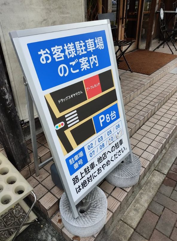駐車場:店舗前、道路を挟んだ場所にあり