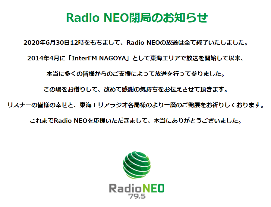 2020年6月30日に惜しまれつつ閉局した