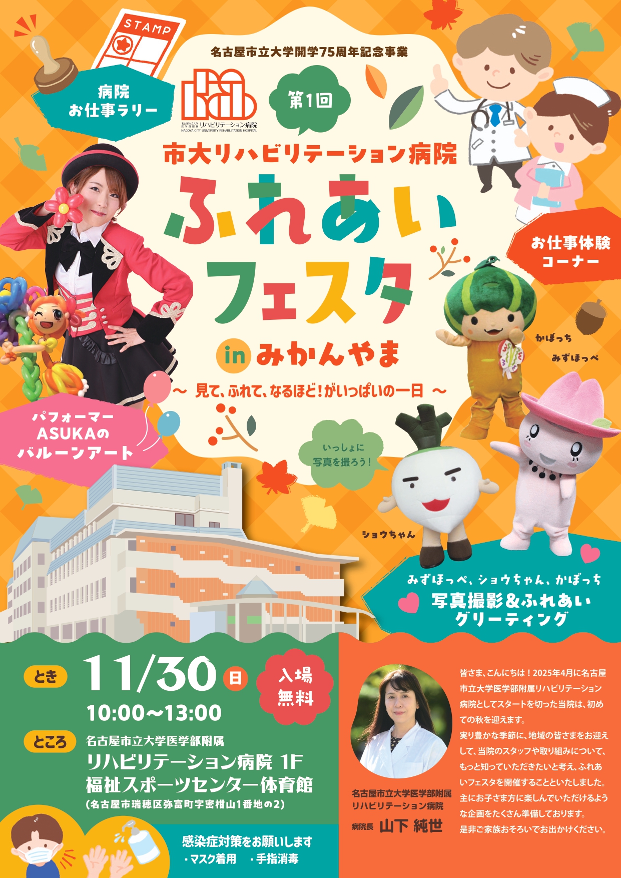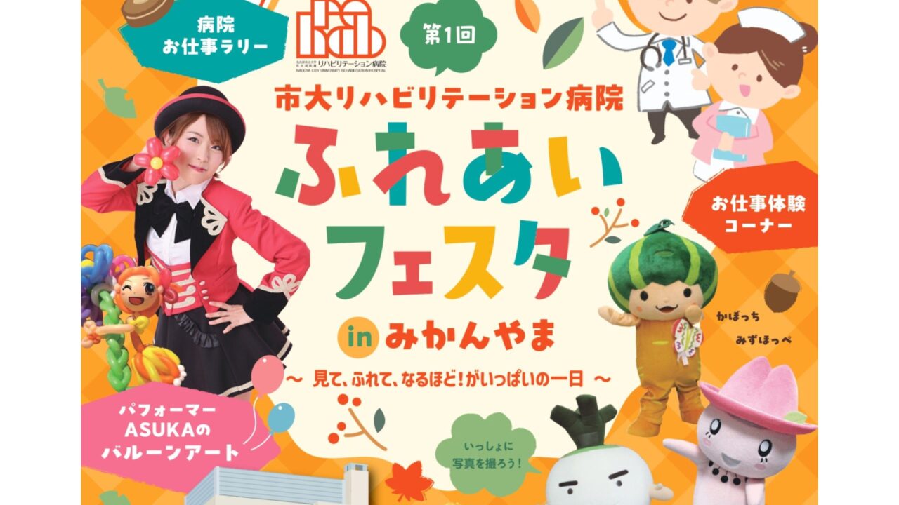 2025年11月30日(土)、瑞穂区にある名古屋市立大学医学部附属リハビリテーション病院で初となる病院開放イベント、『第1回 市大リハ病院ふれあいフェスタ in みかんやま~見て、ふれて、なるほど!がいっぱいの一日~』が開催されます!