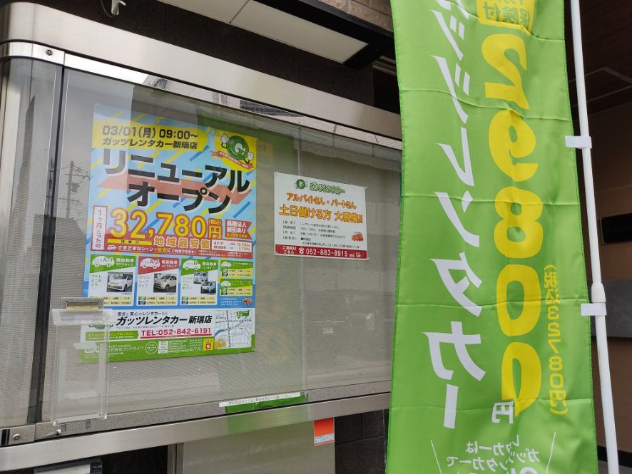 2021年3月、新瑞橋バスターミナル前にあった『ガッツレンタカー 新瑞店』がなくなってる…と思ったら、ちょっとだけ移動してリニューアルオープンしていました。