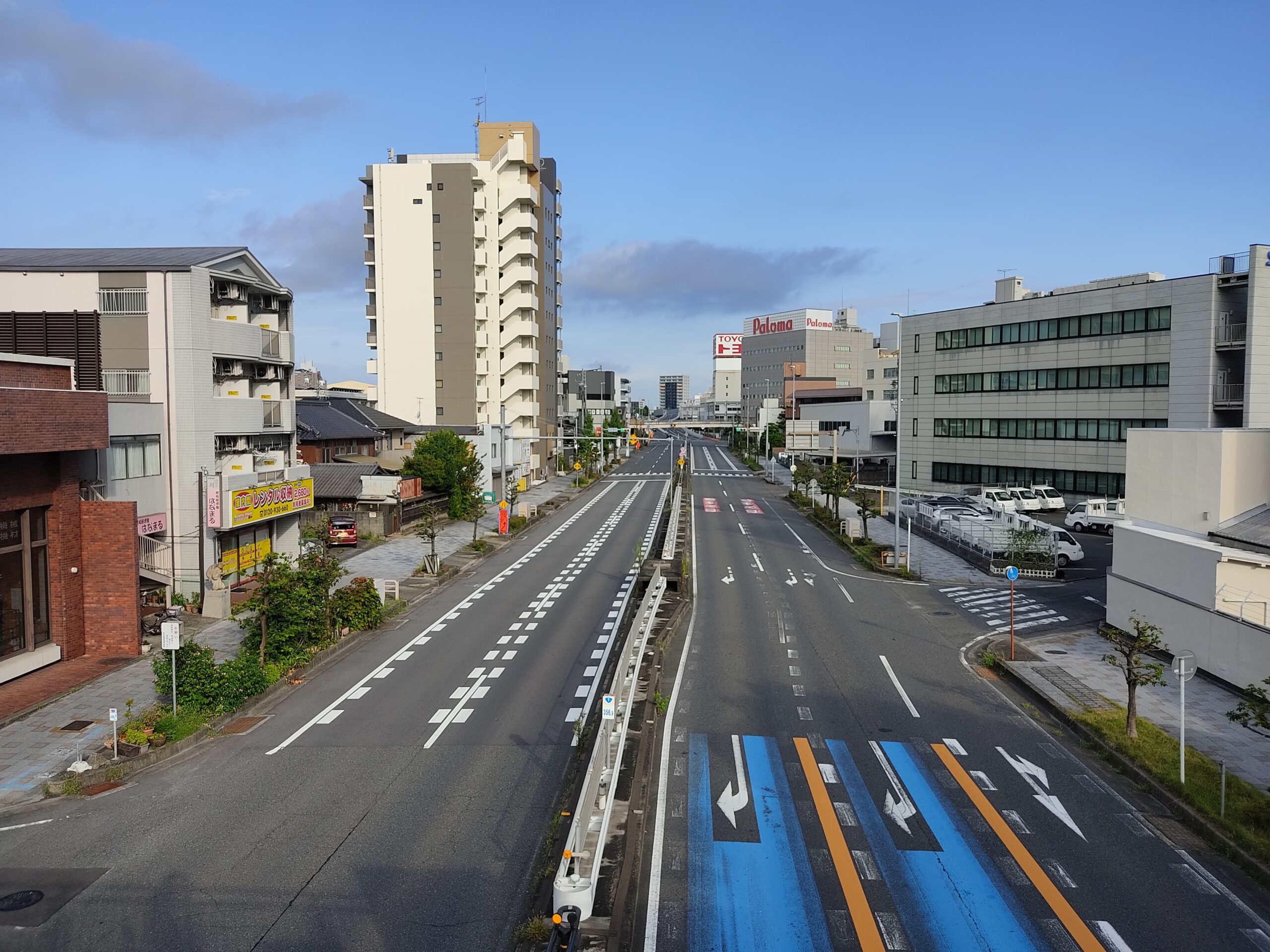 奥に見える内浜交差点まで。この間で交通規制が行われるようです。