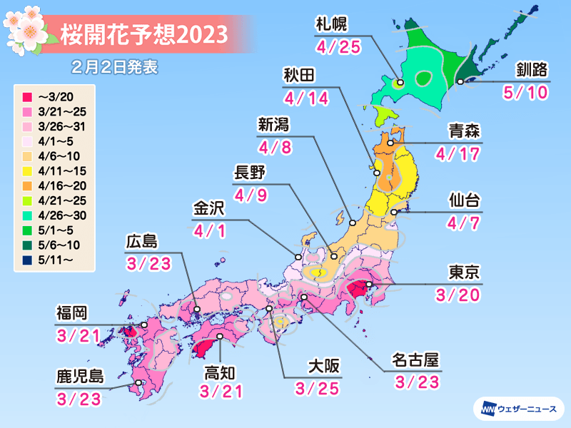 2023年・春、桜の開花予定日はいつ頃なのでしょうか?