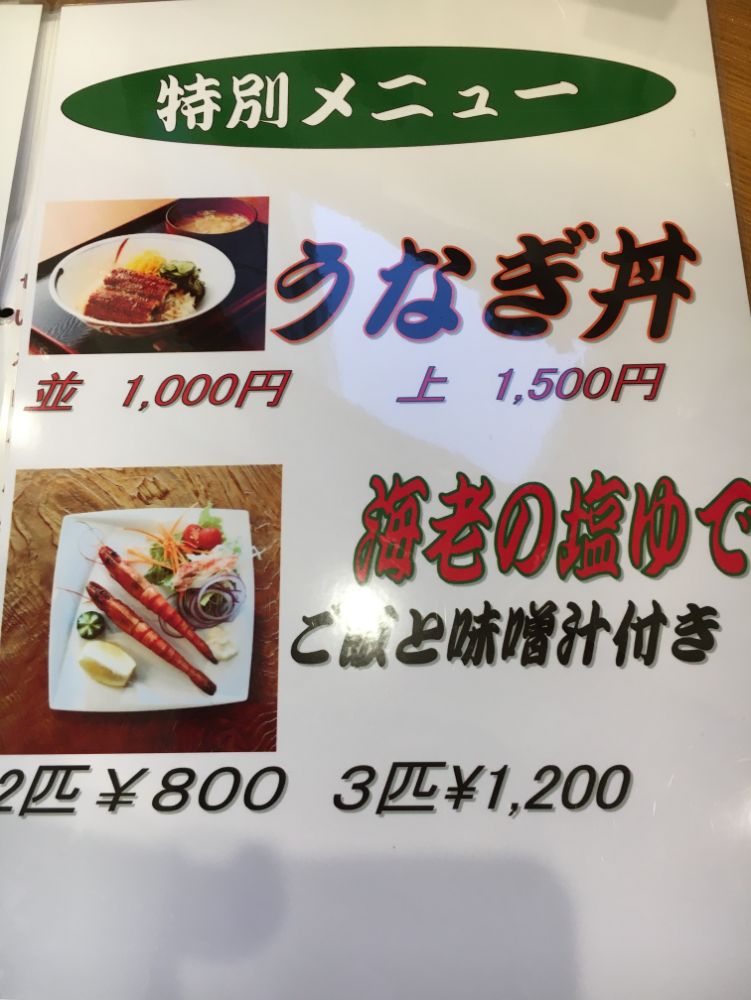 喫茶店では珍しい、うなぎ丼や海老の塩ゆでまであります!