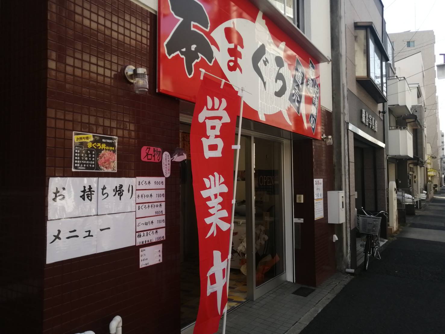 『本まぐろ直売』!!という大きい文字が目立ちます。